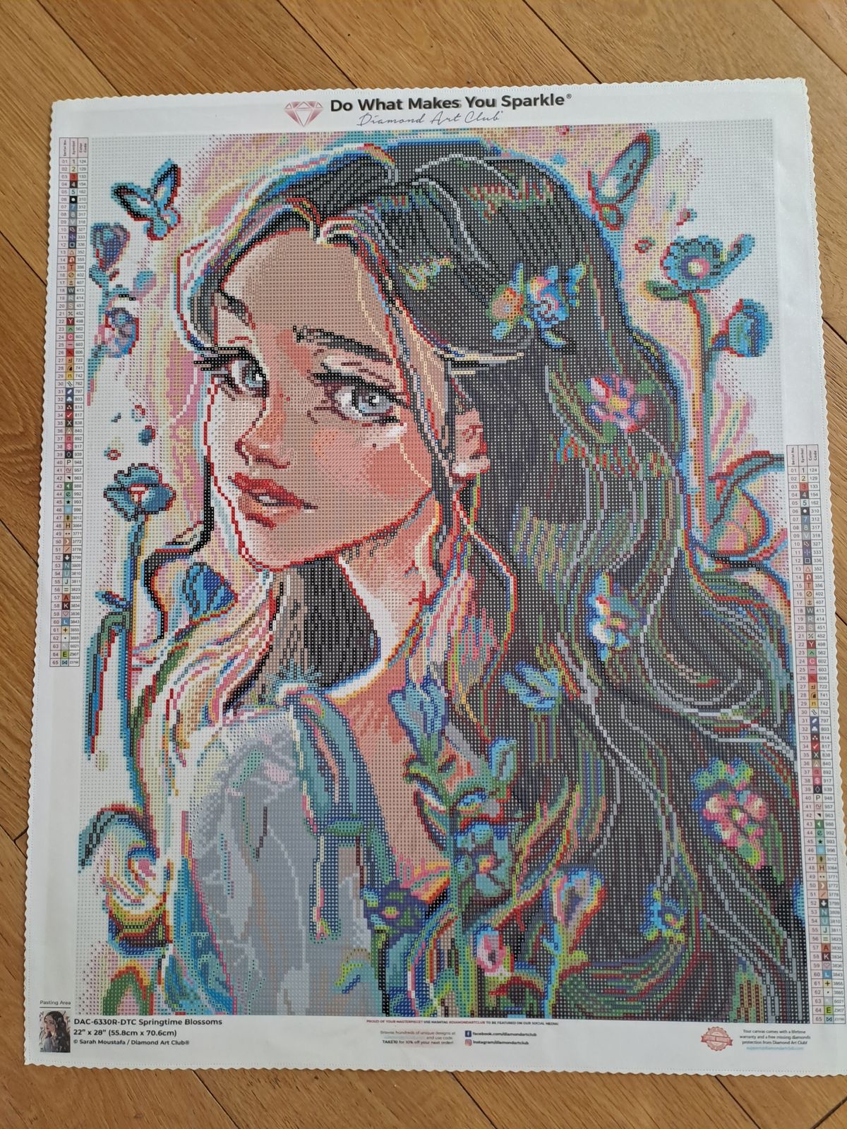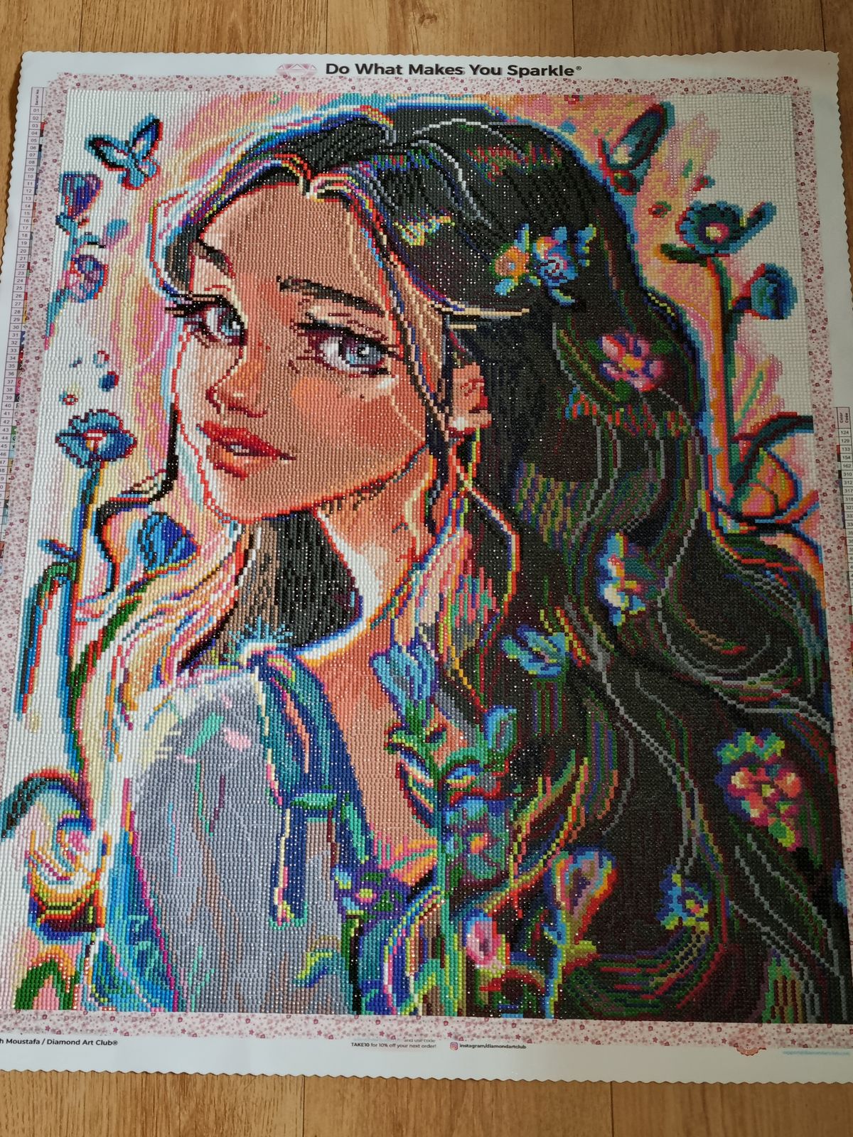 This is my very first diamond painting and I'm still learning how to place the drills and all, but I'm so amazed by the quality of the canvas and the artwork is absolutely beautiful! I can't wait to finish her 🥺
