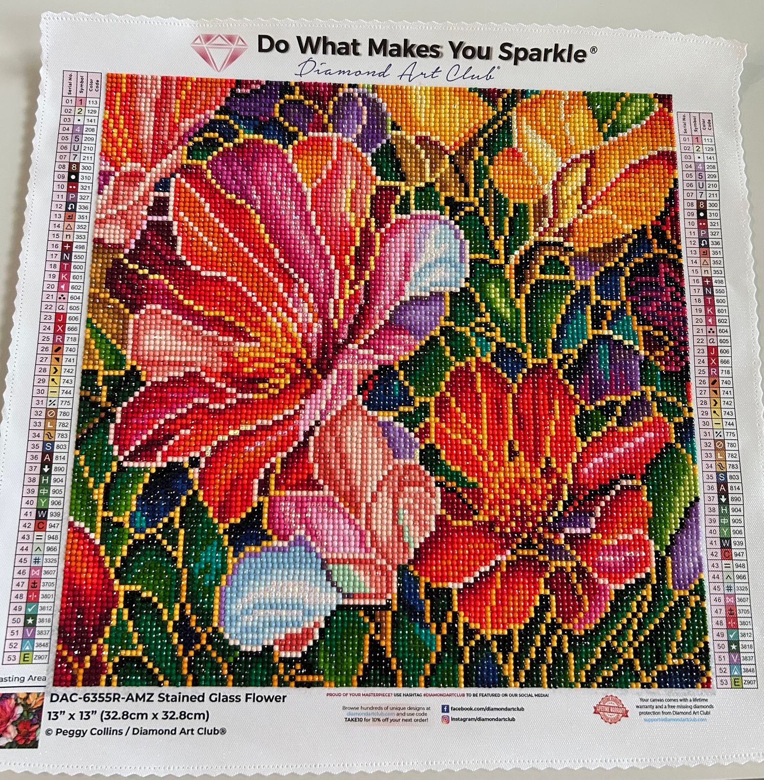 I did this as my first diamond club. It was beautiful canvas but I didn’t feel like it was as sticky as it should have been. Many times I found I had to restick the drills. That took a bit more time than I thought it should. I am finished with the painting and am very proud of it. It’s beautiful