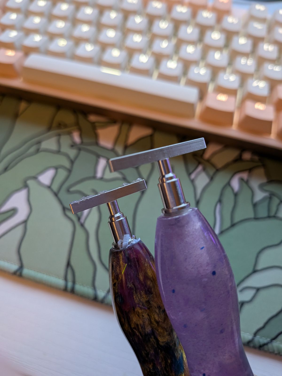 I have the eight and the ten multiplacers in the pic to show the difference. I really like the eight. It's more manageable while I'm working my way up to the ten. I love that the tip is super slim and you can see how many drills are on it without flipping it over. I needed to use some washi tape to get it to fit in one of my pens and the other fit perfectly. It just depends on the size of the hole in your custom pens. Highly recommend these tips!