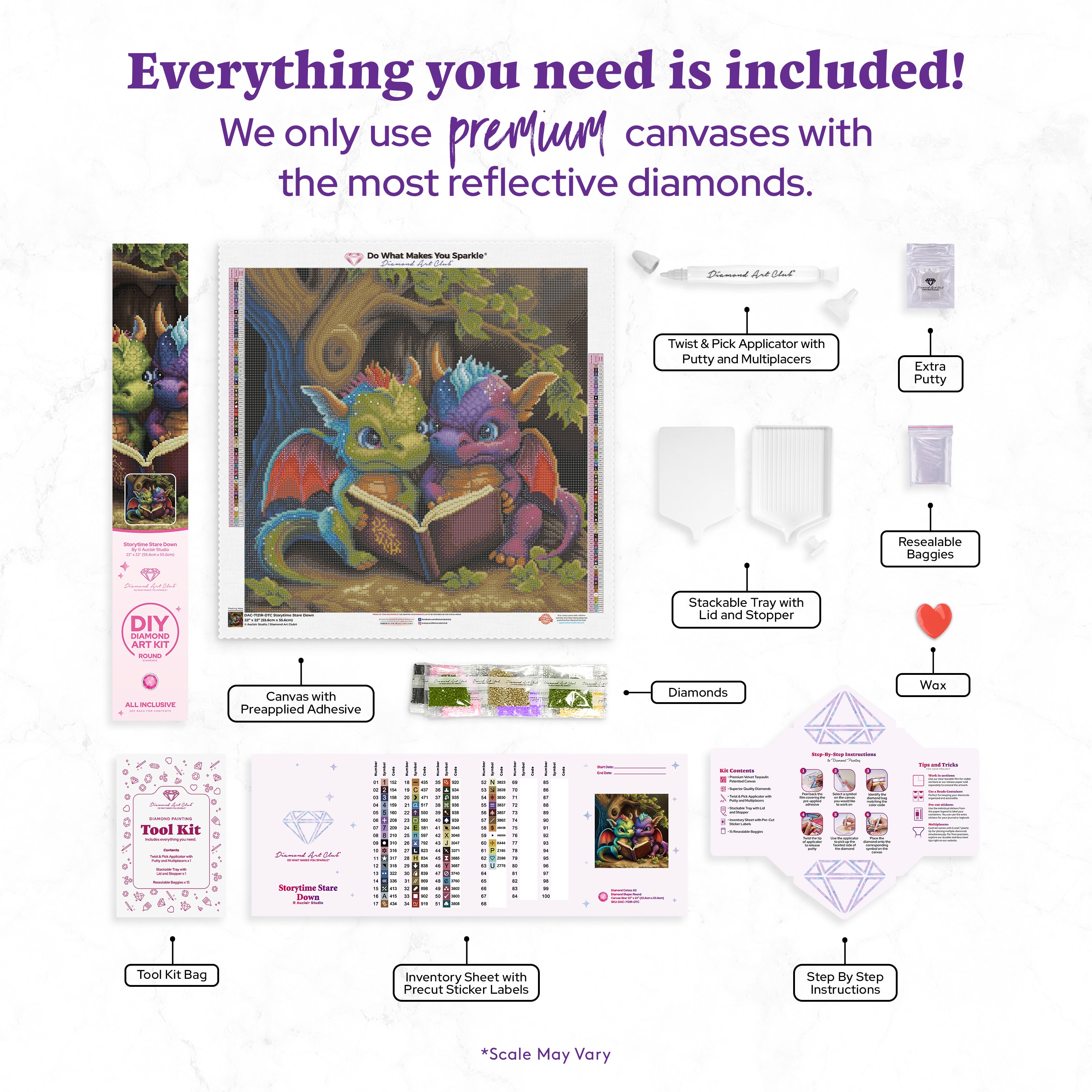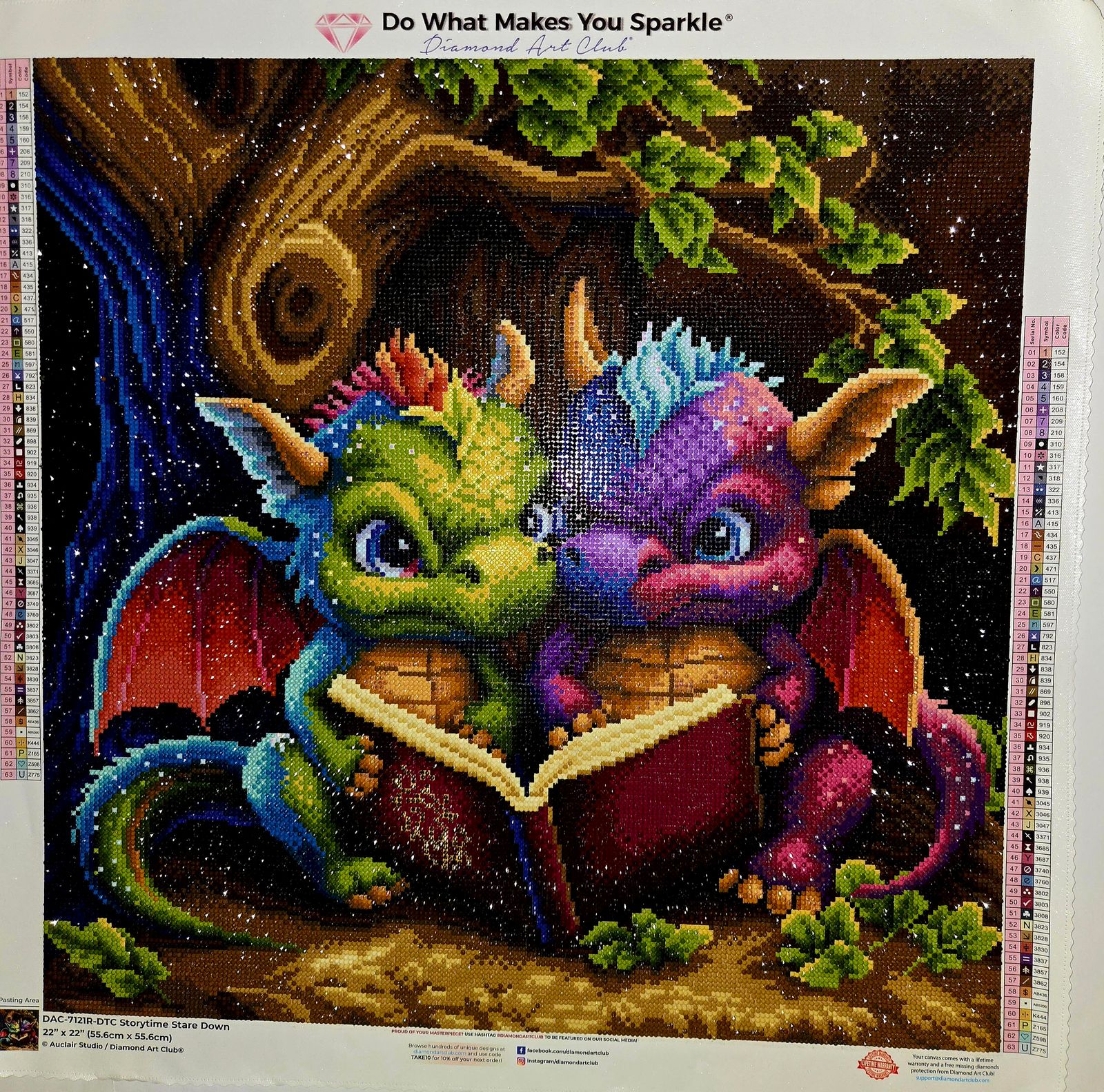 Diamond Painting Storytime Stare Down 22" x 22" (55.6cm x 55.6cm) / Round with 63 Colors including 2 ABs and 1 Electro Diamond and 3 Fairy Dust Diamonds / 40,804