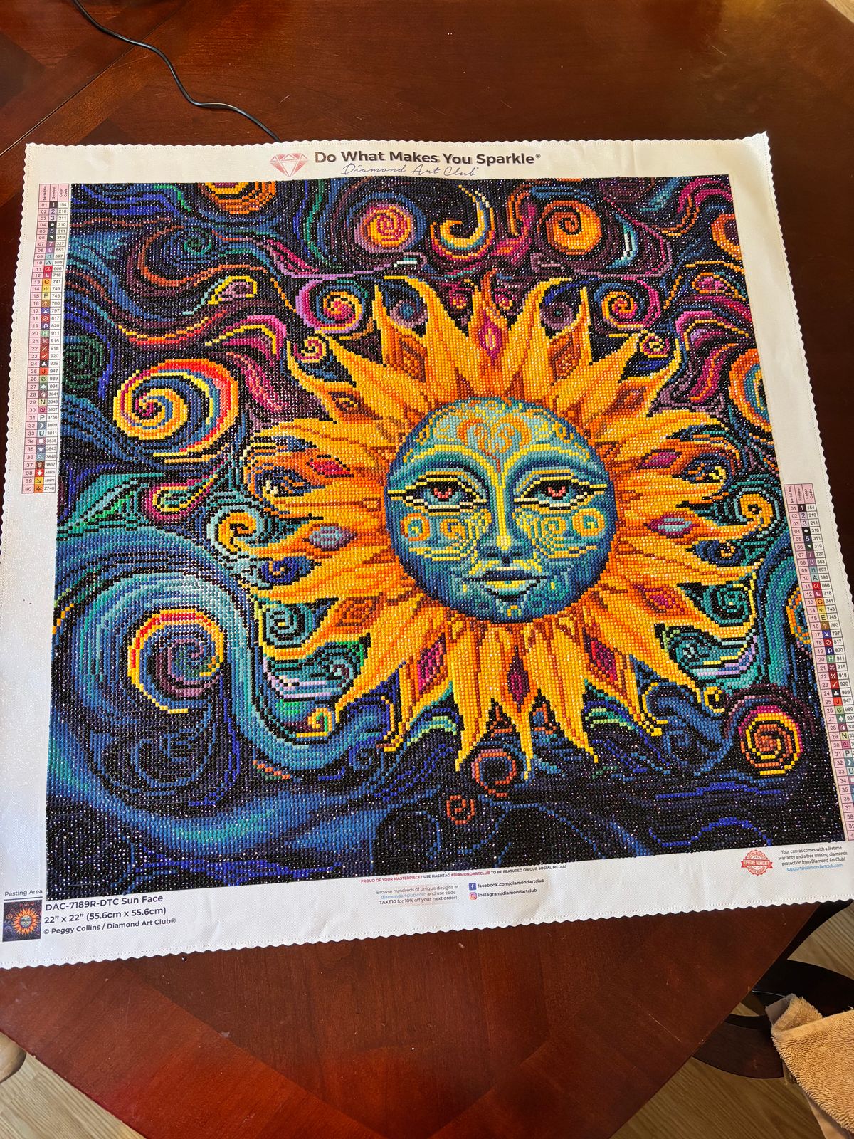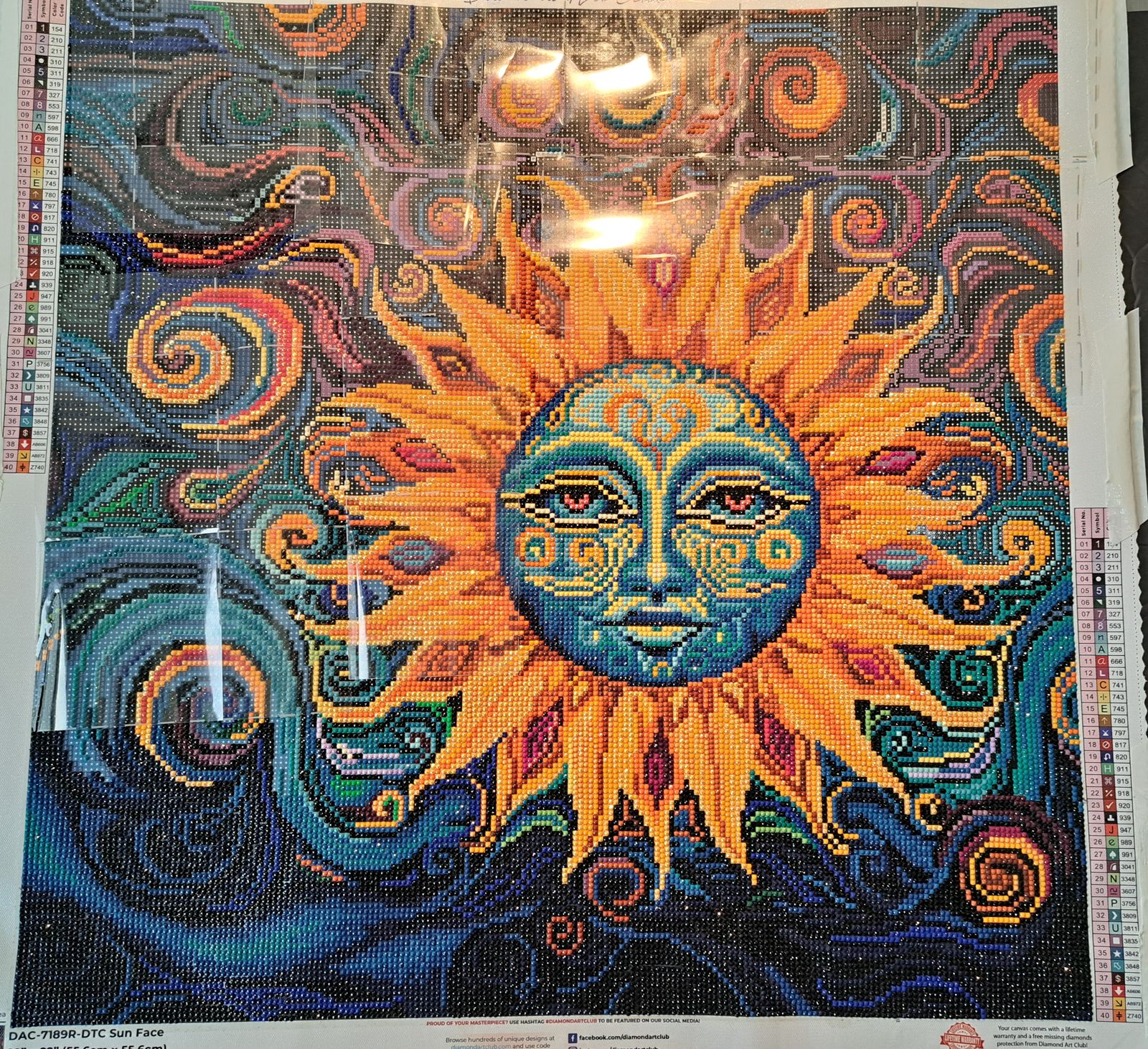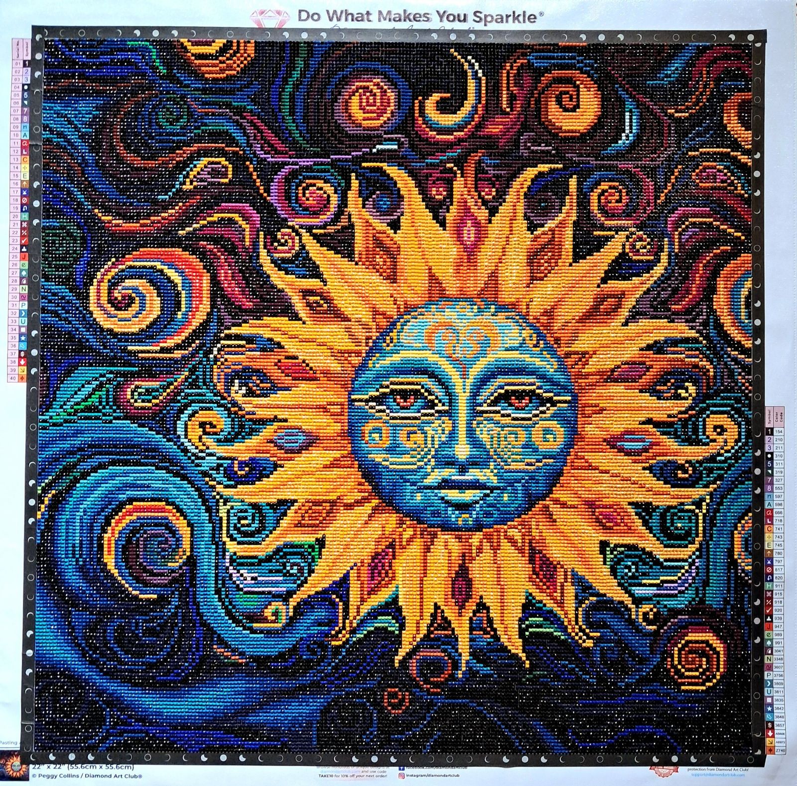 Diamond Painting Sun Face 22" x 22" (55.6cm x 55.6cm) / Round with 40 Colors including 2 ABs and 1 Fairy Dust Diamond / 40,804