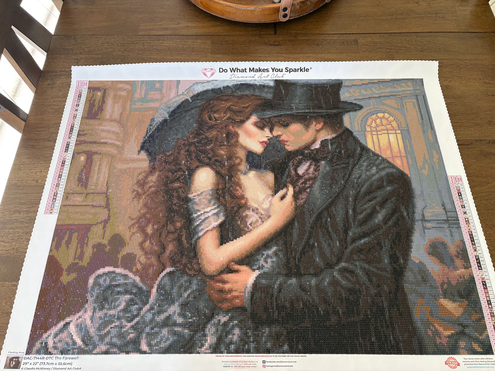 First time ever - was compelled to pull a DP out of my stash due to my current TV Binge. Was loving The Guilded Age and went, hey....I have a painting for that! This one worked up pretty quickly (I ususally trend very large and square...). This ones dimensions are on the most modest end, and drills are round. My favorite parts of the painting are her dress (amazing!) - and the background - it's different in real life that I expected and is the perfect backdrop for the portraits. If you are enjoying The Guilded Age - take that time period to your craft table with this beauty!