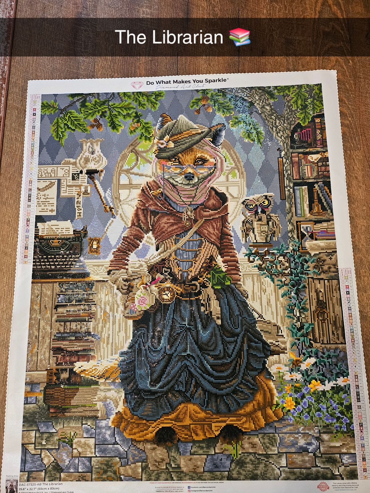 The Librarian by Cheryl Baker is an absolute beauty! From the moment I opened the kit, I knew this was going to be something special. The drill quality, as always with Diamond Art Club, is superb—sparkly, consistent, and easy to work with.