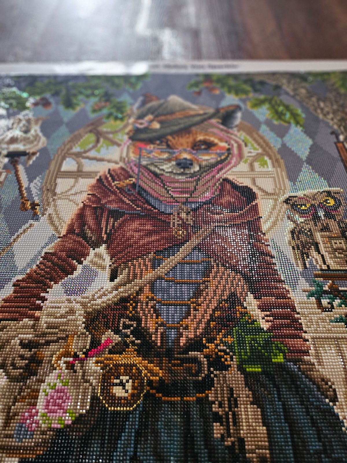 Have the picture about half way done. The detail is beautiful. Looking forward to doing more of Diamond Arts amazing pictures.
