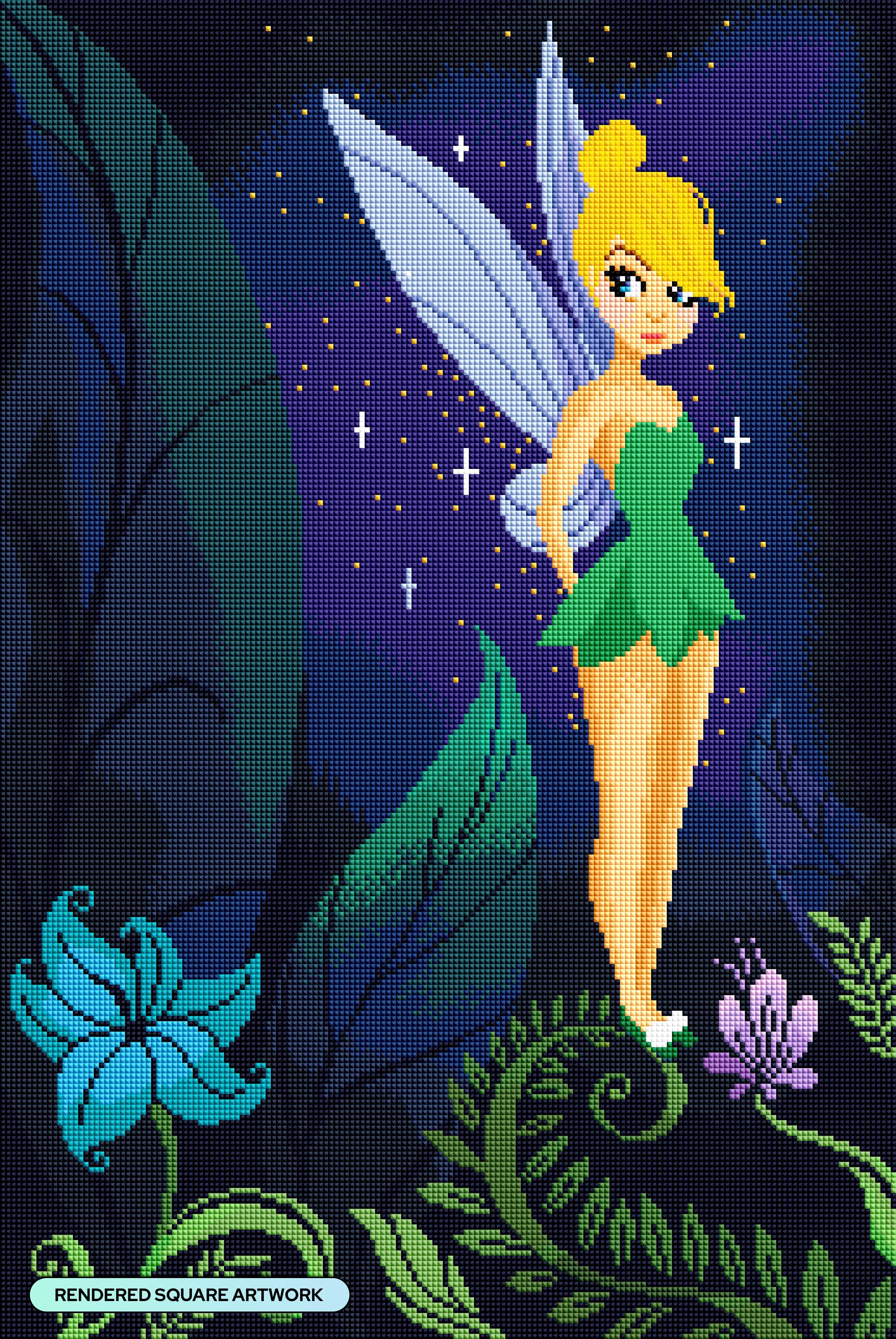Notice her iconic sideways glance and signature green outfit immediately. Sparkling in the starlight, this infamous, temperamental, and fabulous fairy rules the lush gardens of Neverland with a smirk and a handful of pixie dust.