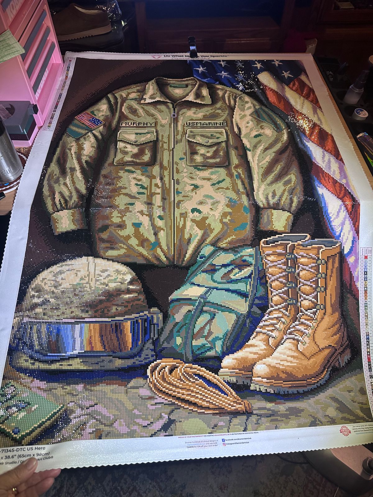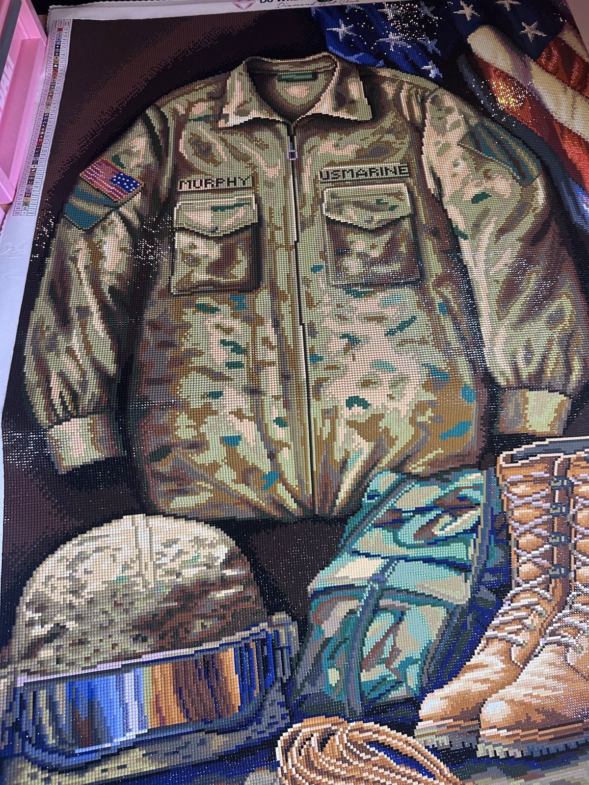 I absolutely love how this turned out. The diamonds went on and lined up with ease. The camouflage and colors are perfect. I made this for my retired husband who served 22 years.