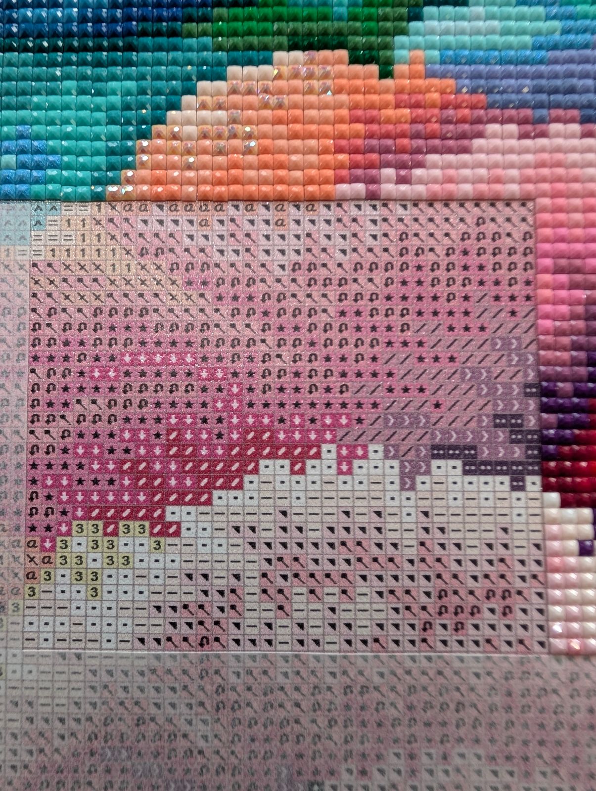 Ich liebe das Bild und auch die Qualität der Steine. Auch das Auspacken ist deutlich aufregender als bei billigeren Bildern. Ich bin allerdings enttäuscht mit der Druckqualität. Der Druck ist so unscharf, dass ich an vielen Stellen die Symbole nicht eindeutig erkennen kann und zum Teil eher raten musste. Auch kann ich die einzelnen Felder für die Steine kaum erkennen, was das präzise Setzen deutlich schwieriger macht. Schade.