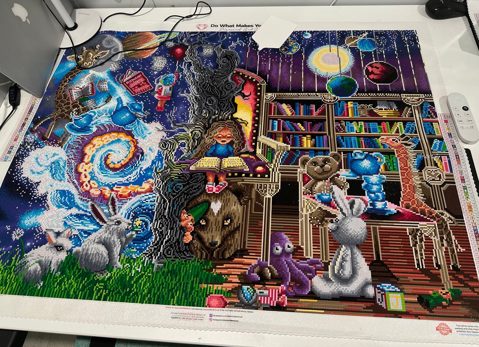 I had to wait for this one to be restocked multiple times before I was able to catch it and buy it! Boy, am I glad I did! It’s the biggest one I’ve done yet, beating out Luna Lovegood (77k+ diamonds), and I’m so excited to get to the end. It’s definitely on the more advanced side if you’ve never done one before and I wouldn’t suggest starting off with one this big. LOL! But when you’re ready, Hazel is an absolutely beautiful canvas to try!