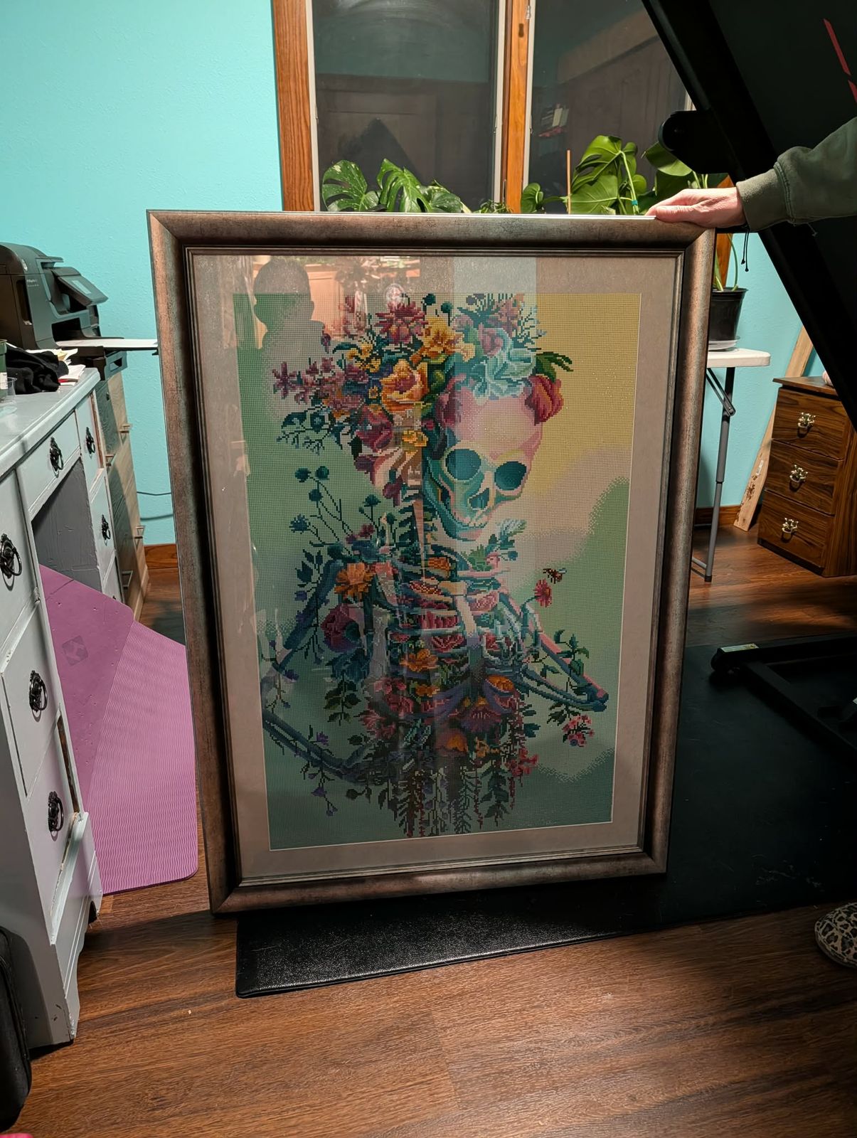 My sister-in-law absolutely loves any with skeletons and loves to grow different plants and flowers. As soon as I asked my brother if this would be something that she would like, he said absolutely! It took a few months before it was back in stock after it first launched, but once I got it, started working on it. It was my first time doing squares and that was a little bit of a learning curve, but it was so satisfying! I don't do anything the easy route. 🤣 Finished it just after Christmas and she took it in to get framed. She absolutely loves it!