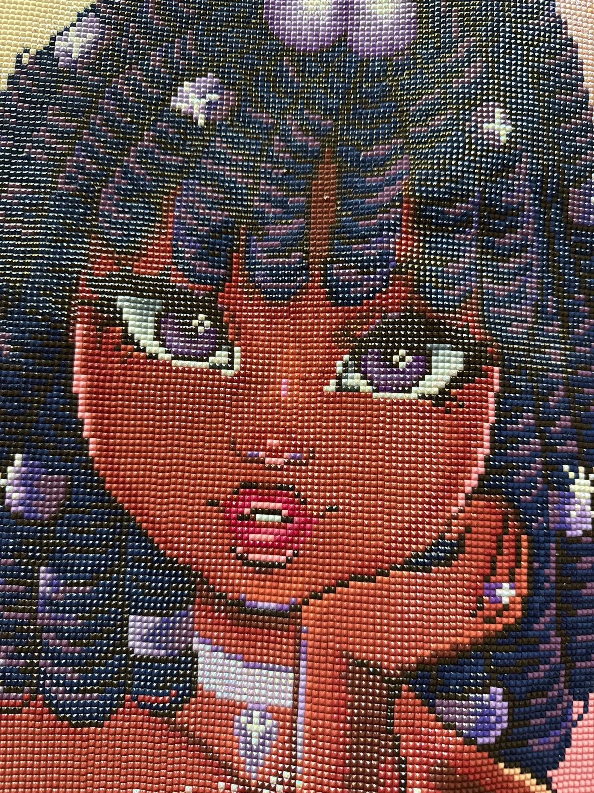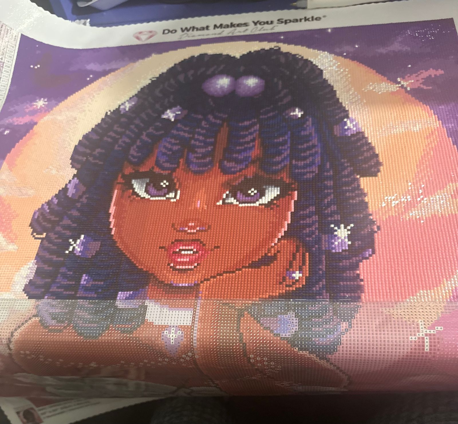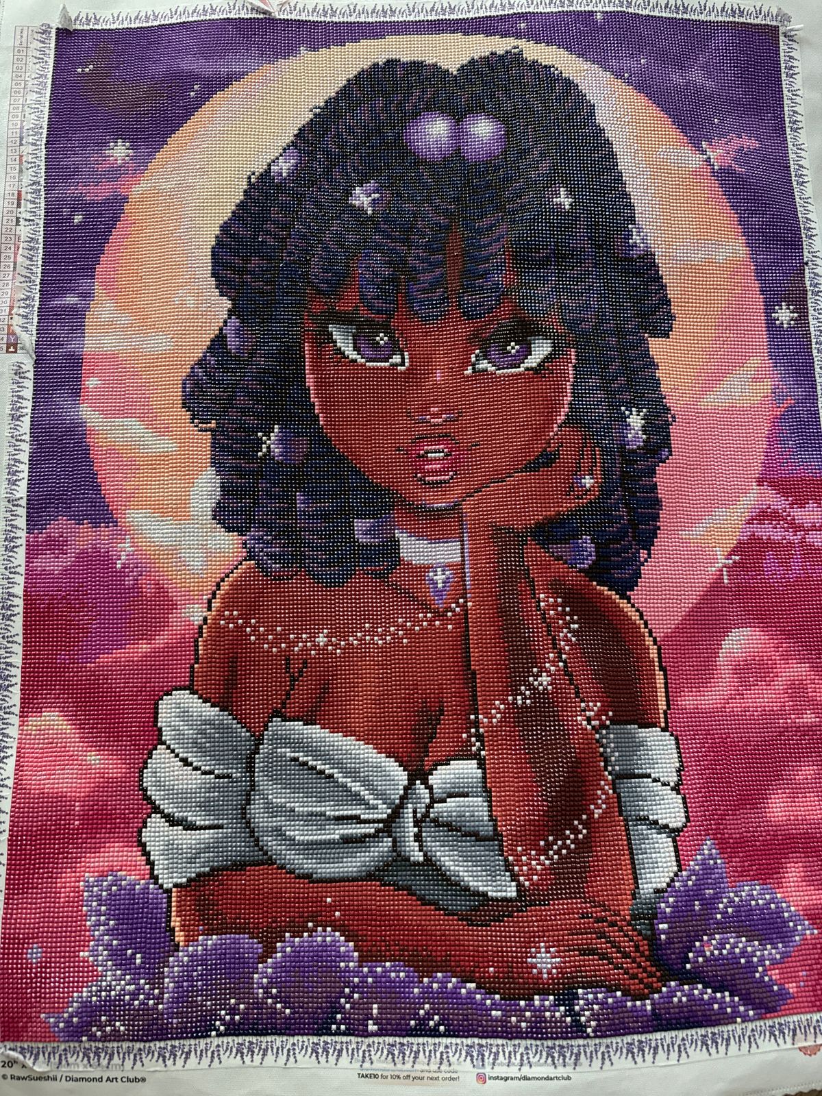 This was my first full drill diamond painting and only the second diamond painting I’ve done ever. It’s so pretty. It was so stunning watching it come together I didn’t want it to be over.