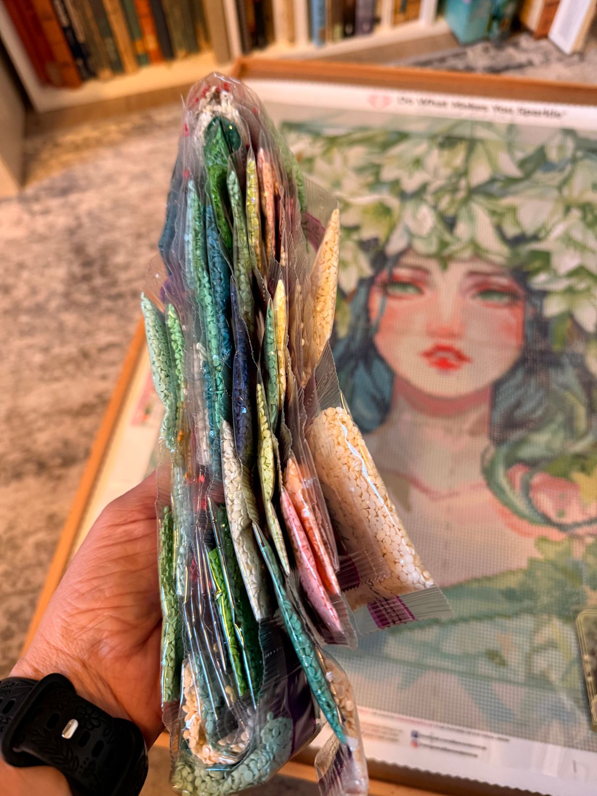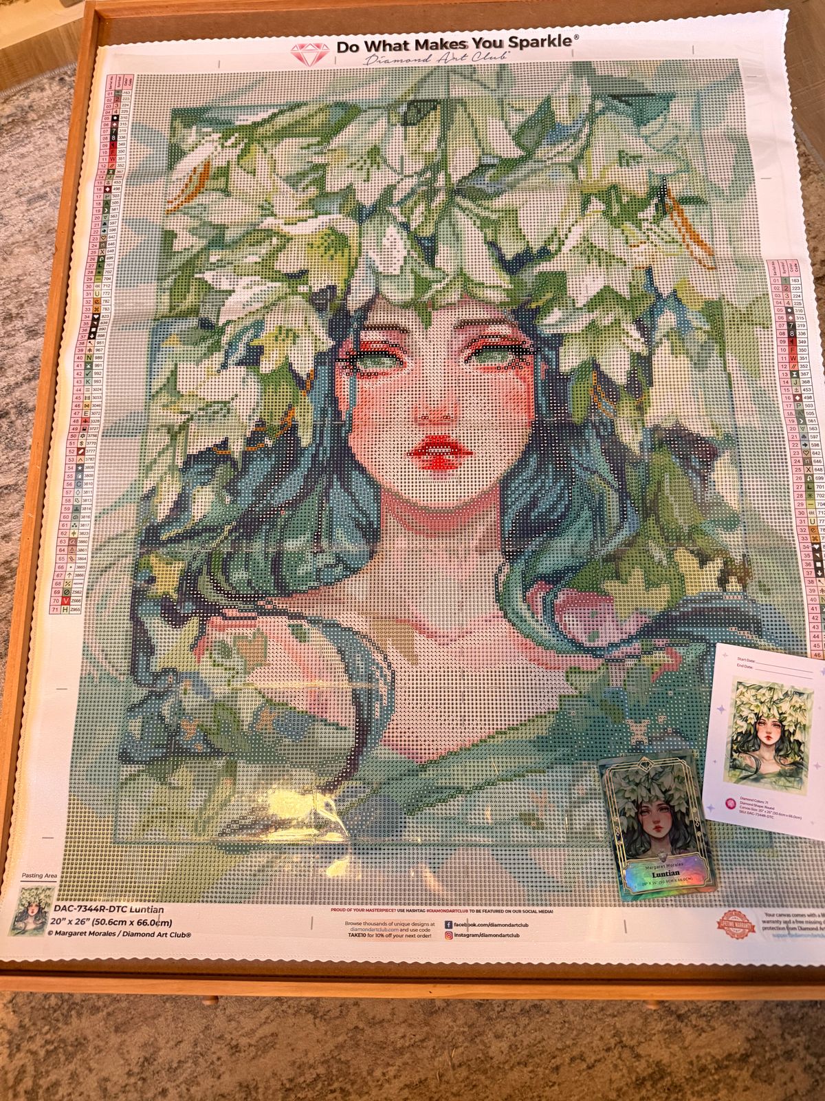 Other than a few small areas where the glue was a bit slippery, this kit was perfect. It looks absolutely beautiful. (Note: This wouldn't be great for anyone bothered by a limited range of colors--there were lots of DMC colors, but they're almost all shades of green or teal or aqua.)