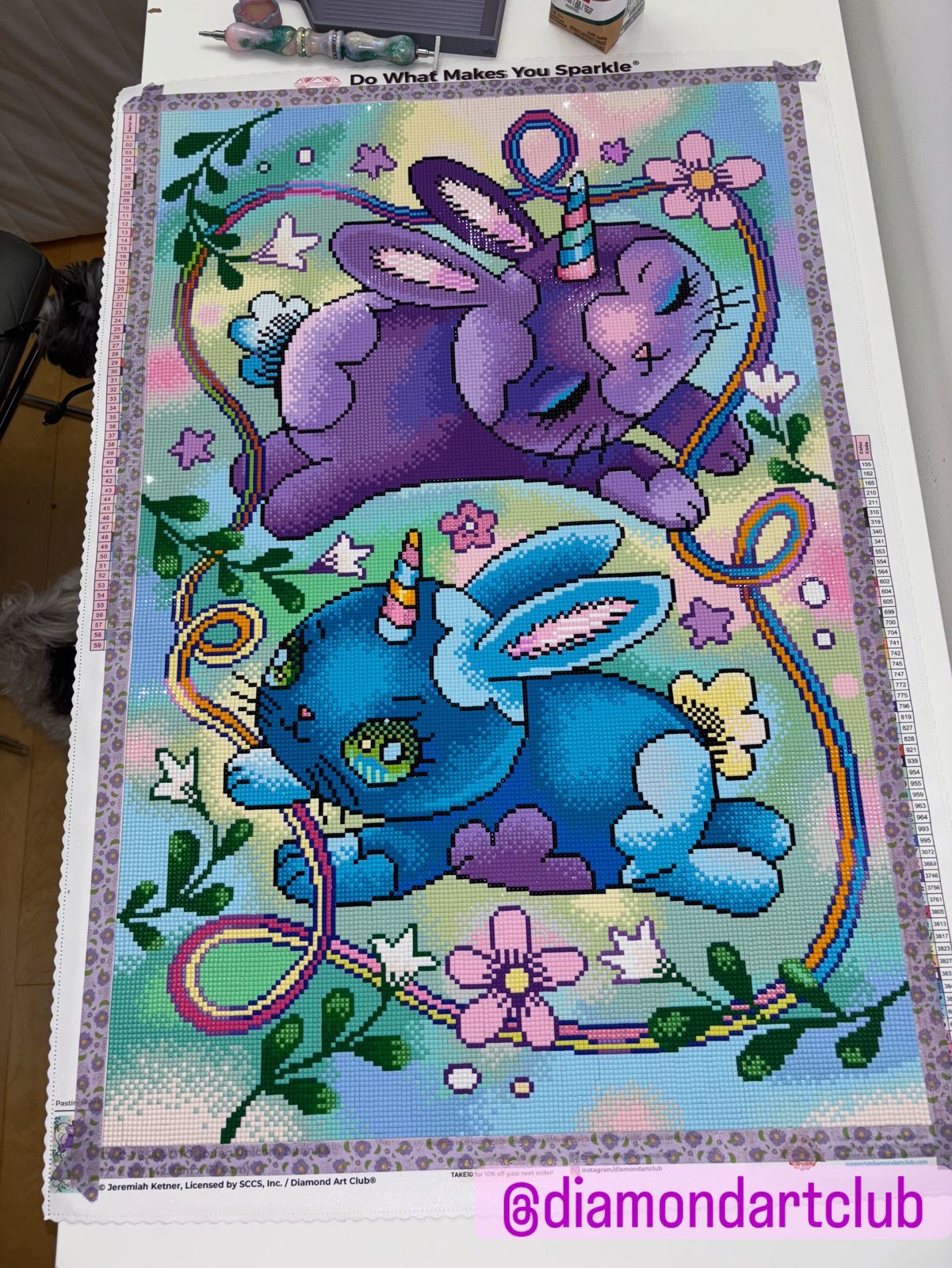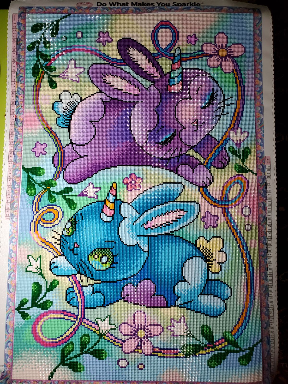 Diamond Painting Spring Unicorn Bunnies 17" x 26" (42.8cm x 66cm) / Square with 59 Colors including 1 AB and 5 Fairy Dust Diamonds / 45,580