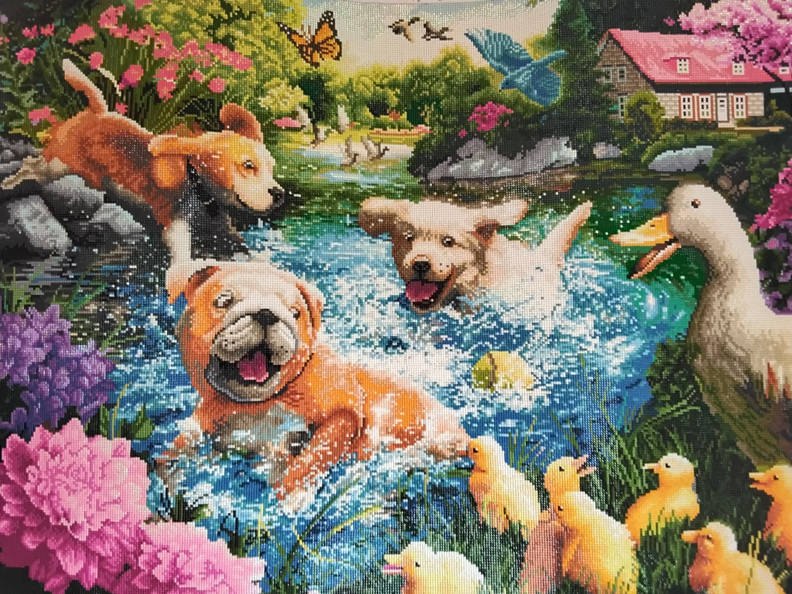 I have been eyeing this one for awhile and am so happy that I made the purchase. Cute puppies and ducklings!!!!! Such a playful scene!
