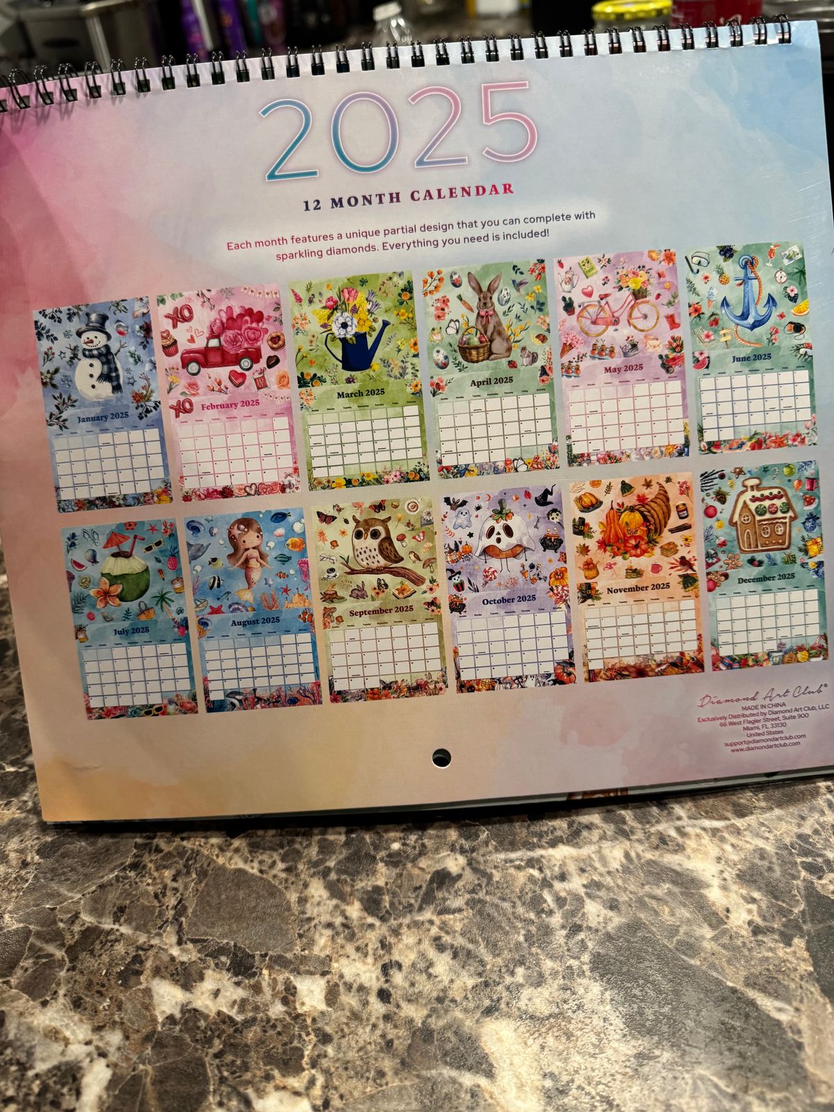 Transform your year into a glittering masterpiece with our 2025 Diamond Painting Calendar! Each month reveals a dazzling new canvas, inviting you to create sparkling designs with round-shaped diamonds that capture the beauty of the seasons. Featuring partial drill designs that balance creativity and structure, these unique creations bring the essence of each month to life in shimmering detail. Sized at 12 x 10.2 inches (30.5 x 26 cm), this beautifully crafted calendar isn’t just for marking dates—it’s a daily source of inspiration and a year-long artistic journey.