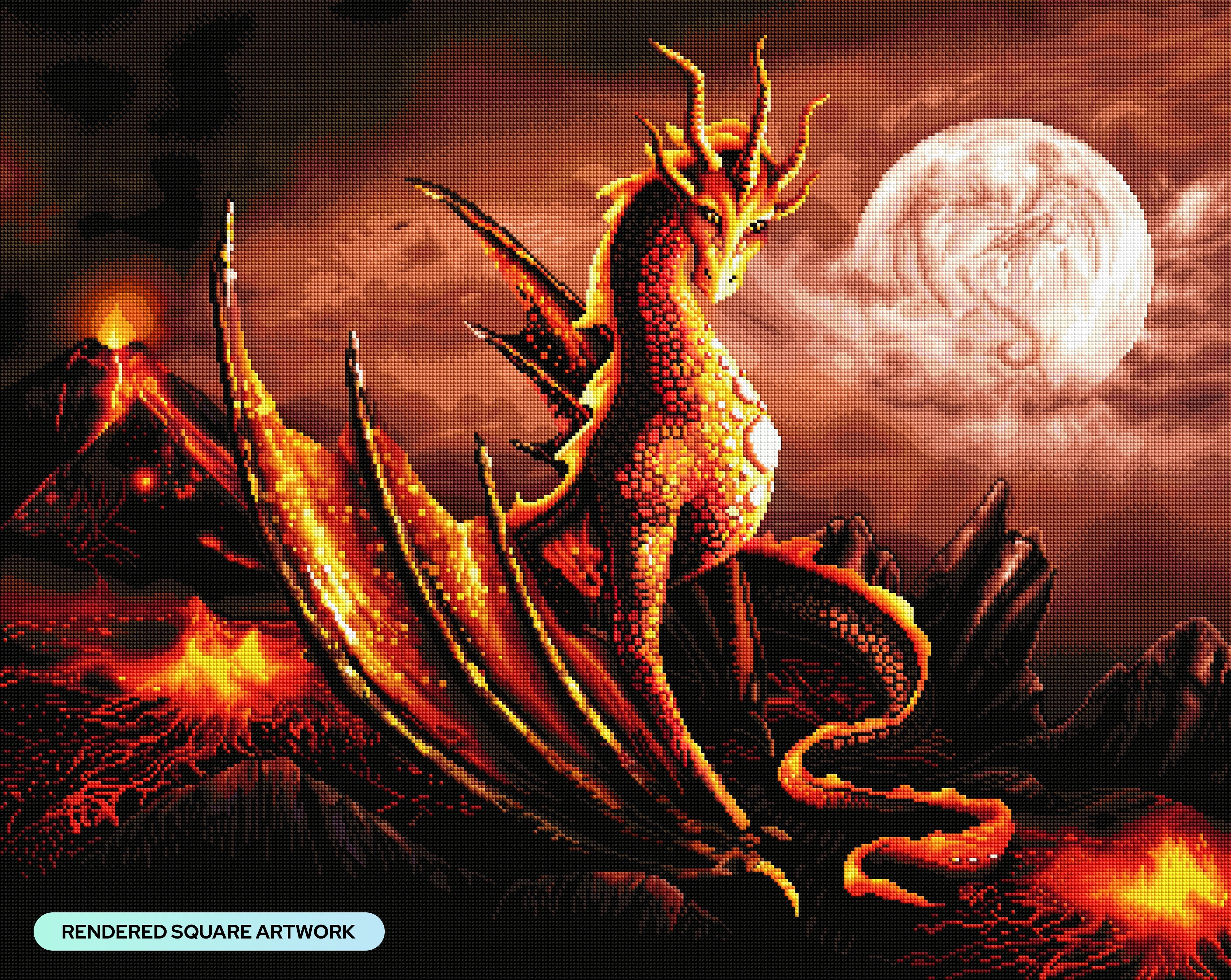 This artist does amazing work and this kit does not dissapoint. Love the rendering of this. The red dragon, the lava and the moon with the dragon in the moon in the background. If you love dragons, this one is worth the buy.
