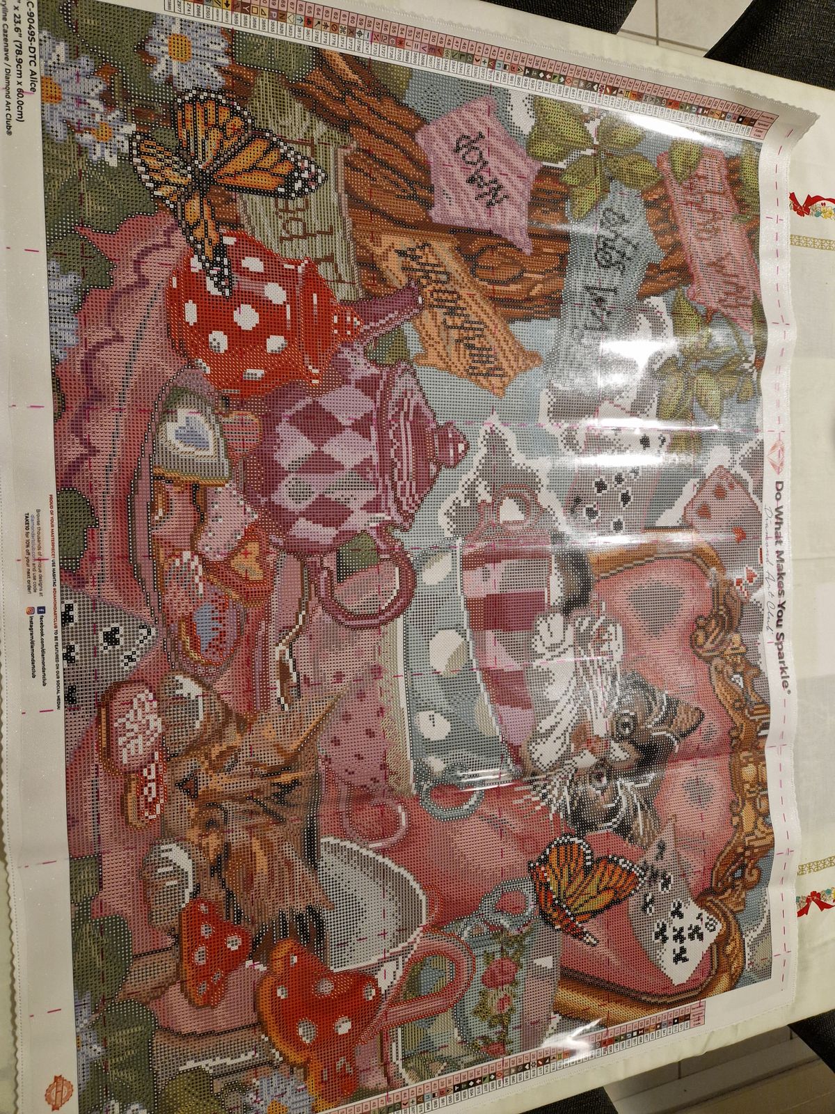 Les deux chats, les papillons et le service à thé sont une invitation à prendre cette toile et à la commencer.