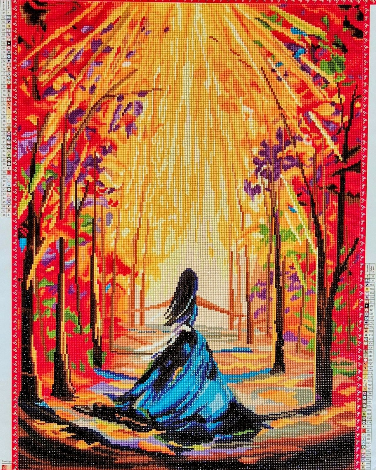 This diamond painting kit is vibrant, moody, and has a great mix of colors that makes me feel happy while working on it. the process really engaging.