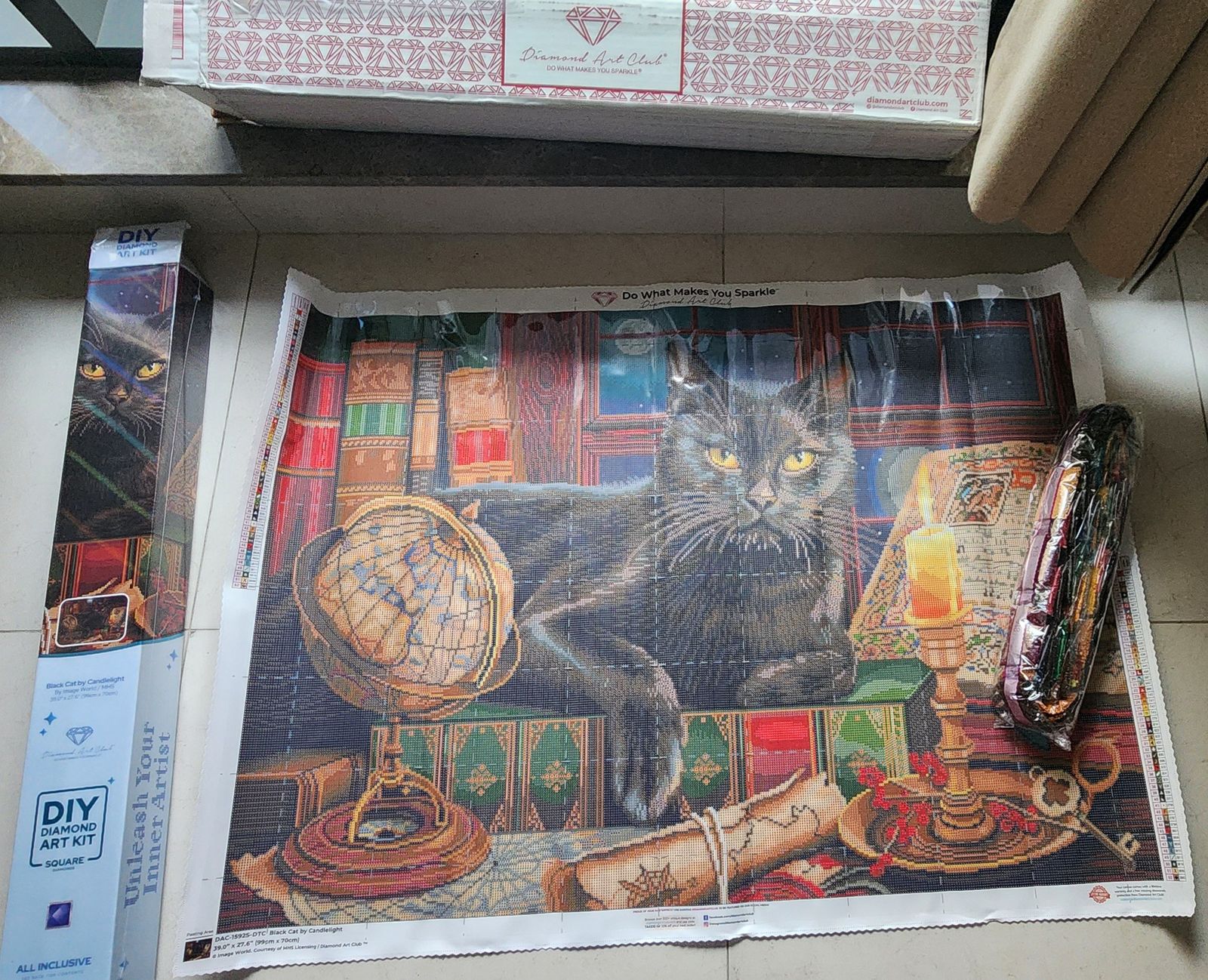 This is an amazing rendering and I love he quiet mystery of the books and the cat. Of course the canvas and drills are exceptional quality as always! Would definitely recommend!