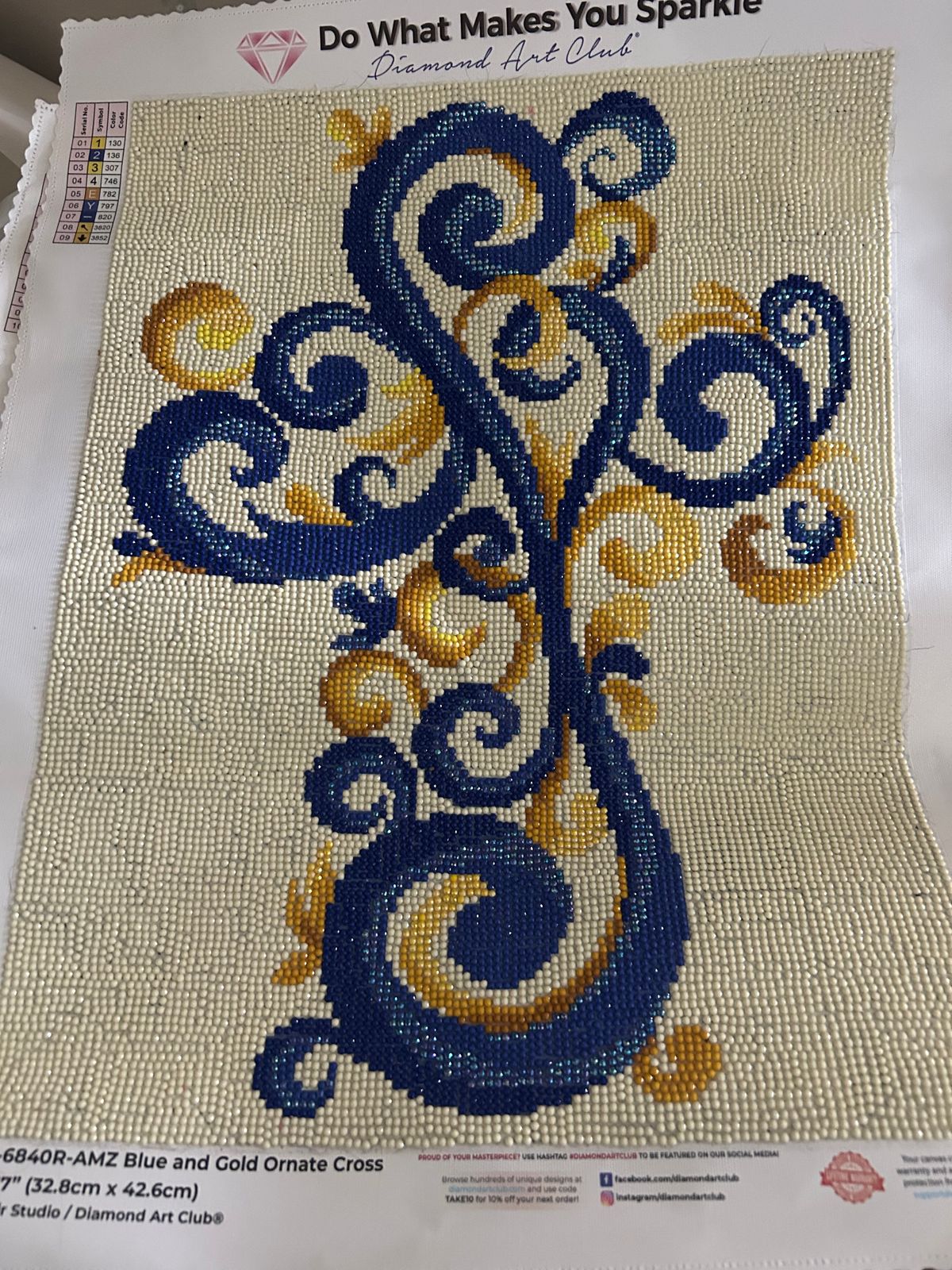 I received this in my mystery box. I donated it to the local minister's wife to complete for their church prayer room.