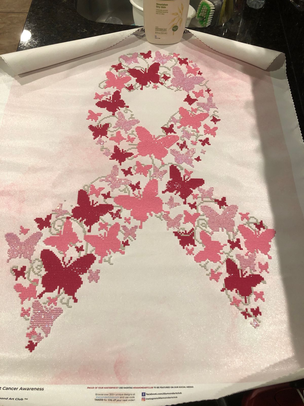 I purchased this as a gift for my mother who is a breast cancer survivor. She especially loves butterflies which made the canvas thst much more special for her. Beautiful shades of pink and works up quick as a partial. Easy enough for a beginner painter.