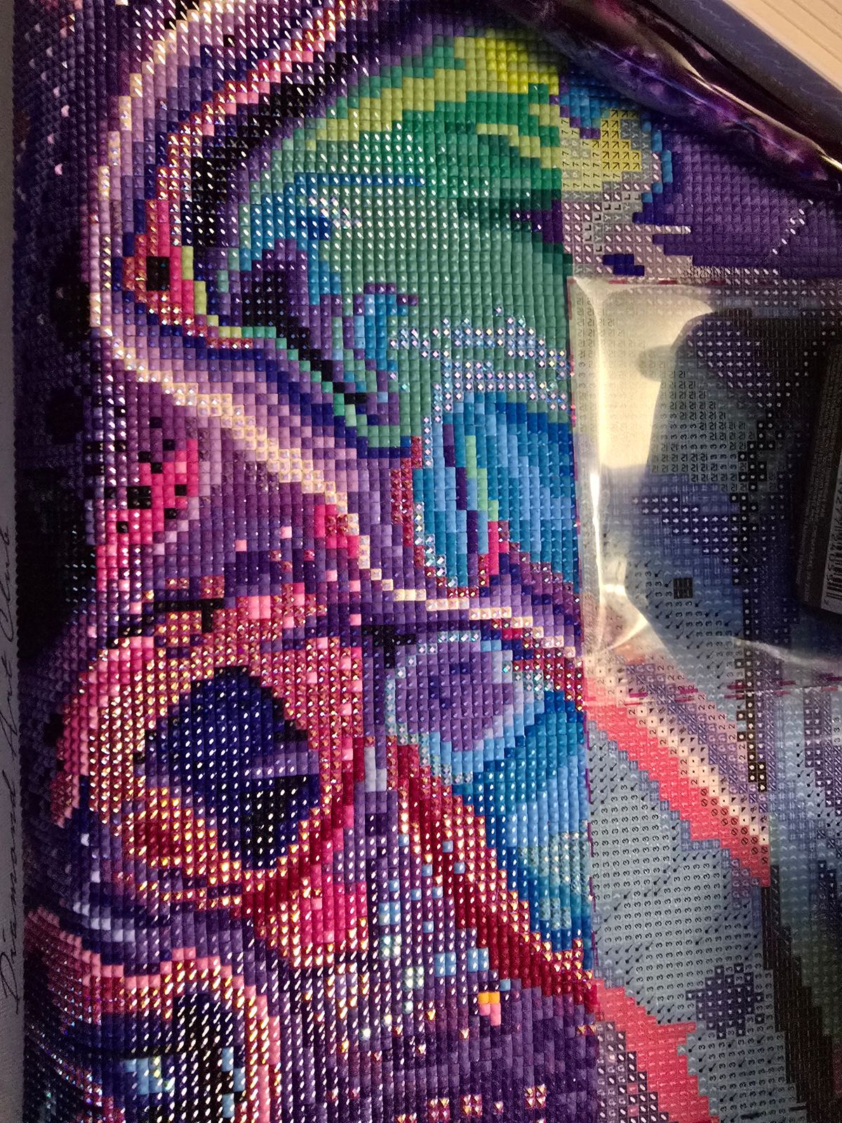 If you’re a fan of purples & blues, you need this kit. Nice sized as it’s not huge but not tiny either. No huge areas of confetti or color blocking, but has a nice mix of colors that allow for multi placing. Big areas of specialty drills make this canvas pop.