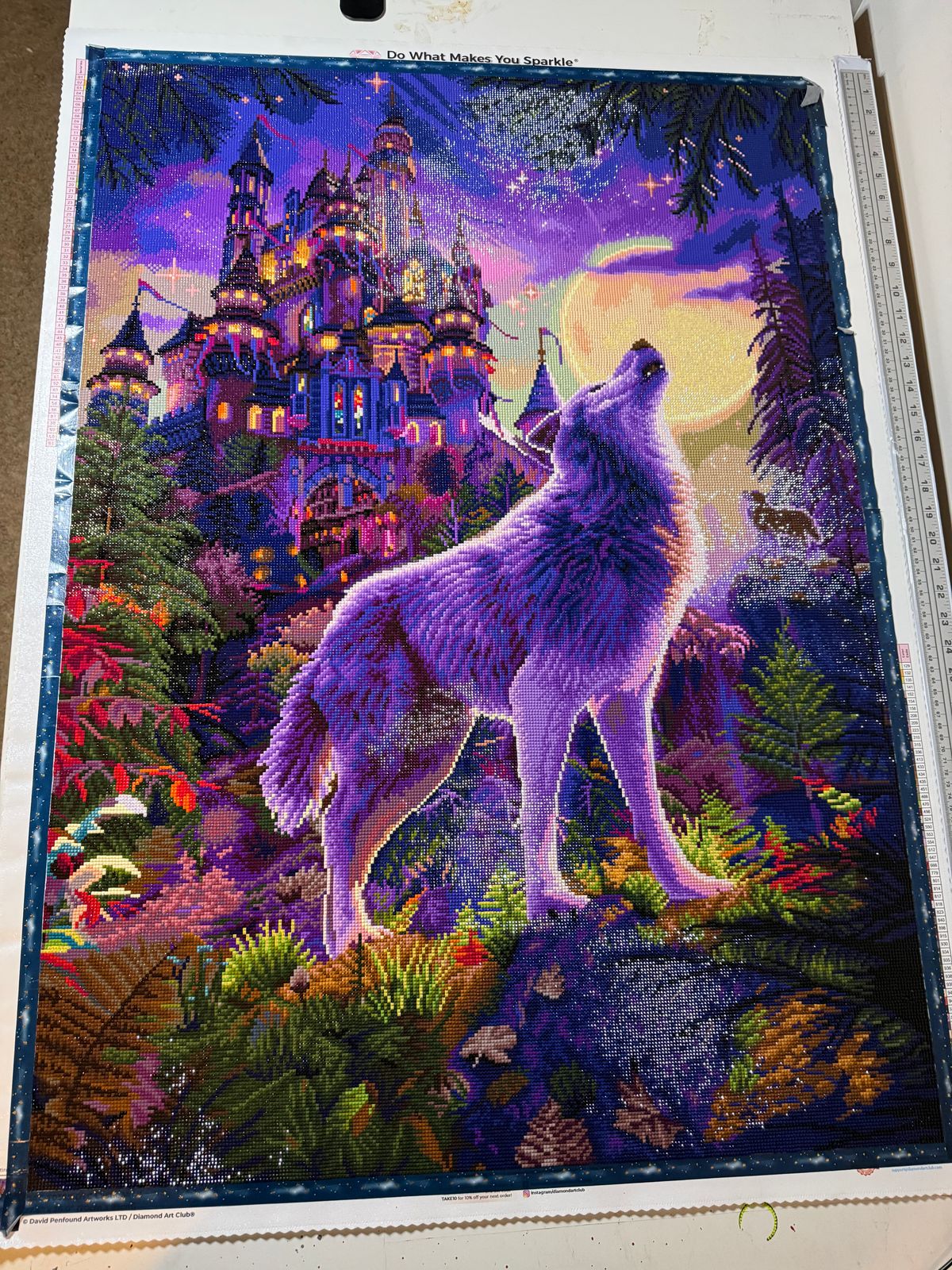 This was my first diamond painting. It took 211 hours and 15 minutes. I learned a lot and did not rush. I absolutely feel in love with diamond painting and Diamond Art Club. I have already started my next DAC project. I think I am going to favor the larger ones like this one. The colors are gorgeous.