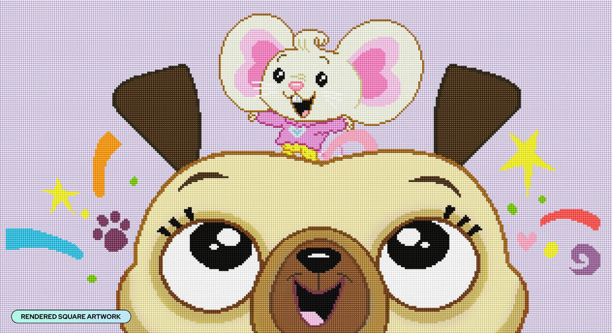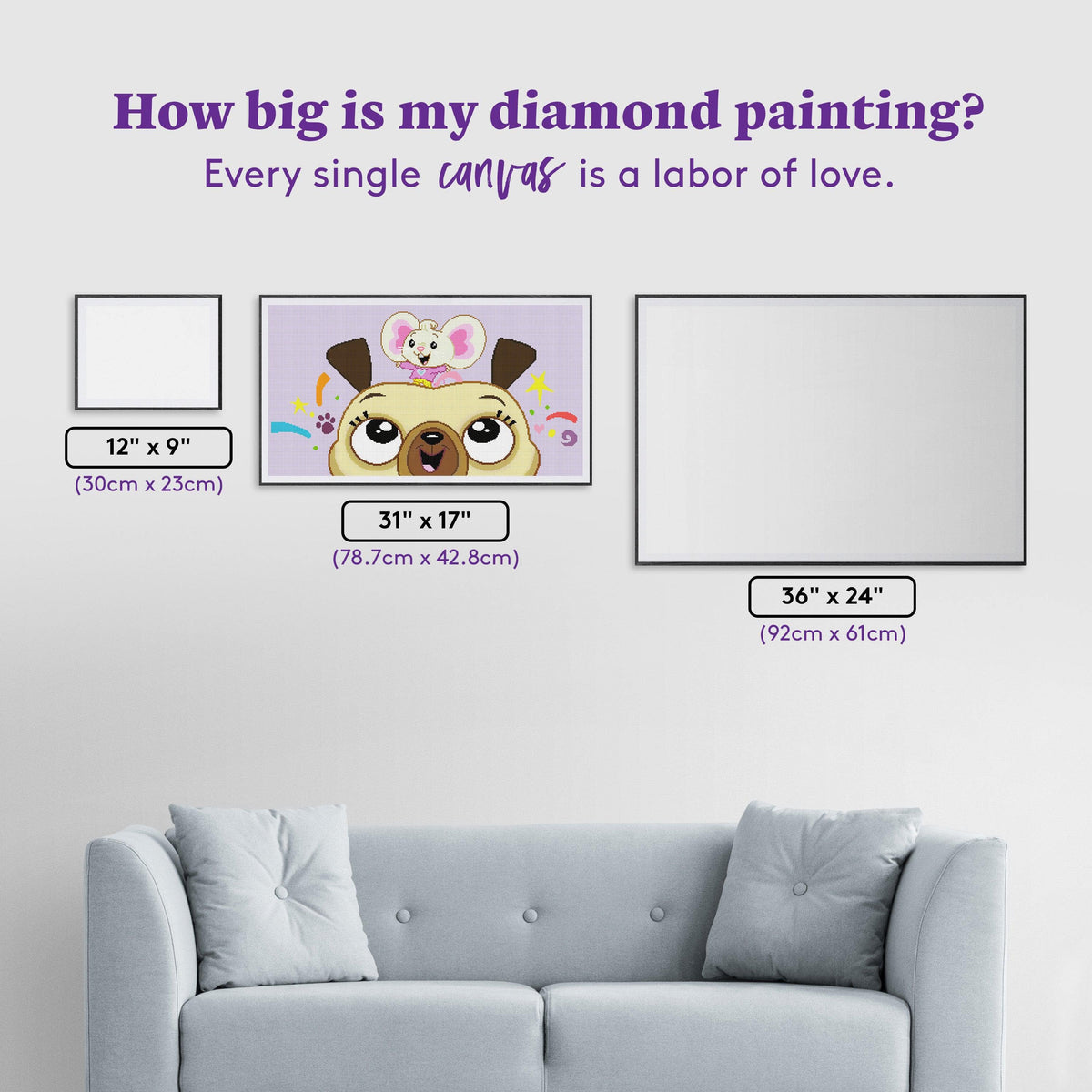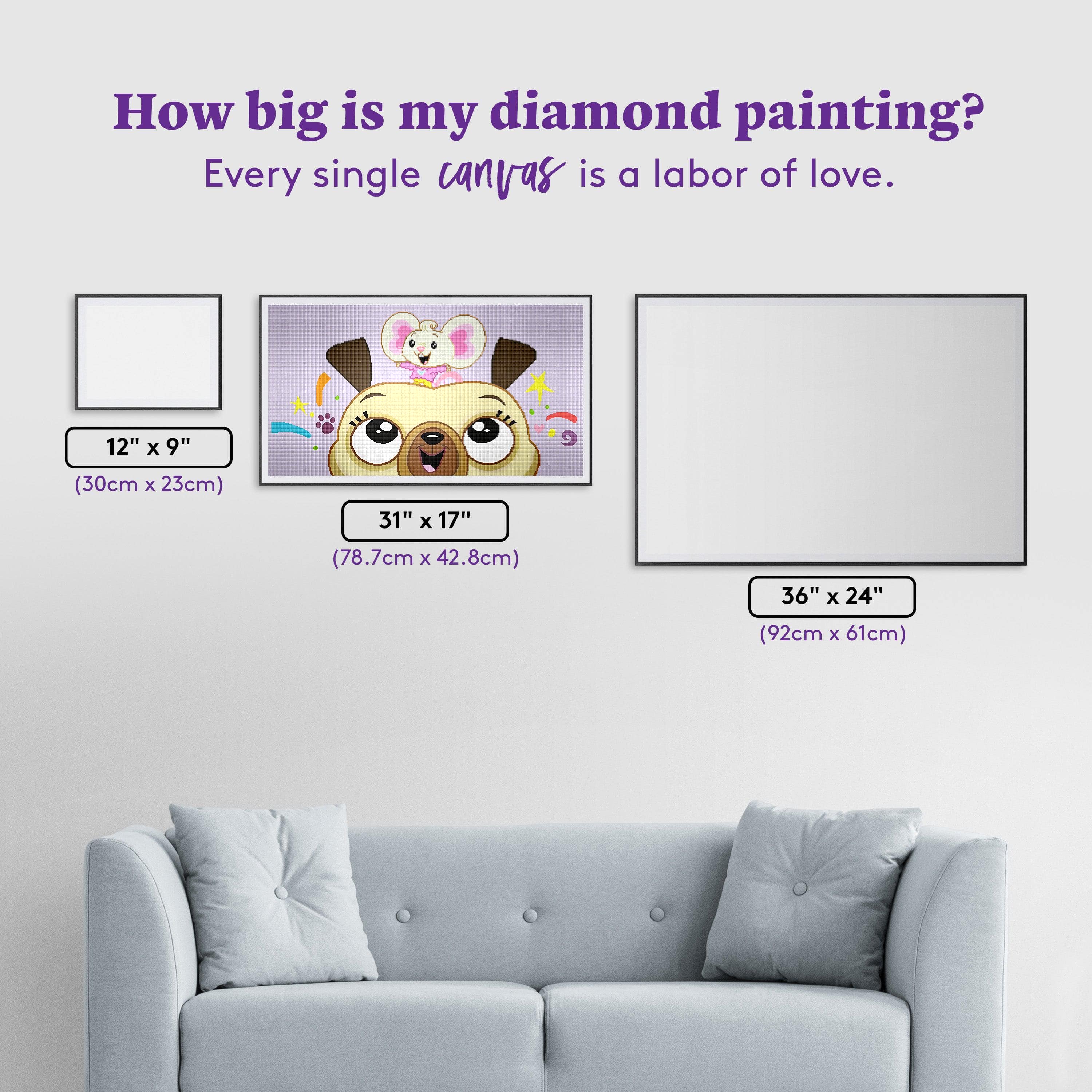 It's a cute diamond painting of Chip & Potato. My daughter has loved that show from the very first time she watched it. So I thought getting this to hang in her room would be perfect. There's not too many colors, so it's a breeze to work on. As always the canvas, drills, tool kit, ect are top notch. I just love DAC and their products!!!
