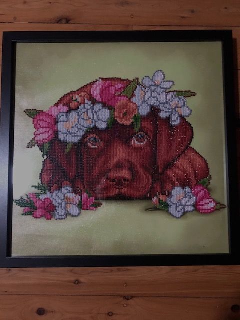 My daughter is in love with dogs and has been wanting to decorate her room with them. I got this one for her to do but she struggles to focus on anything for very long. So after she worked on it s few times she requested that I finish it for her. It was a fast class to work on and I felt like I was flying through with these round drills. It's beautiful and sparkly and my daughter is very excited to put this up in her room!