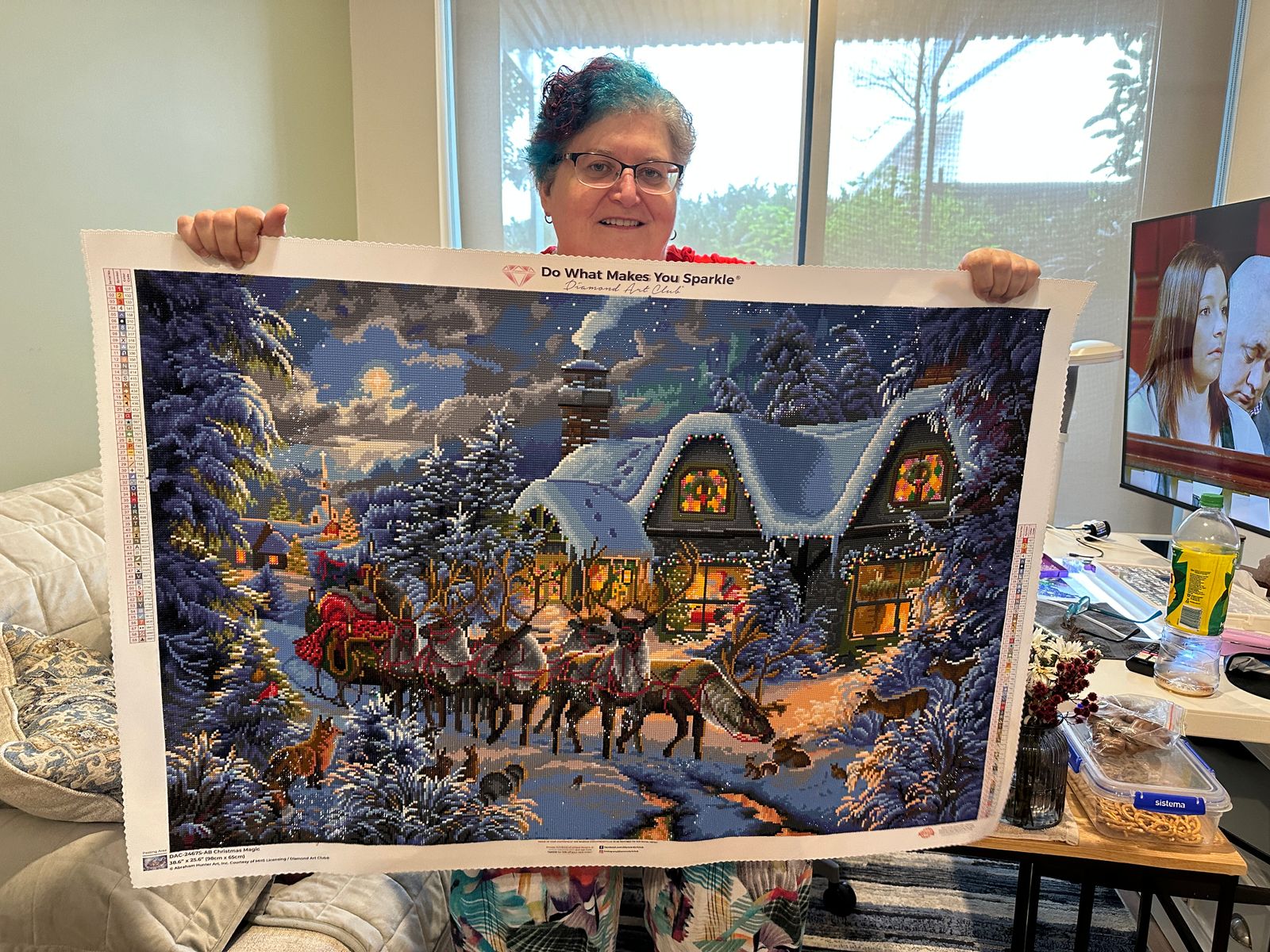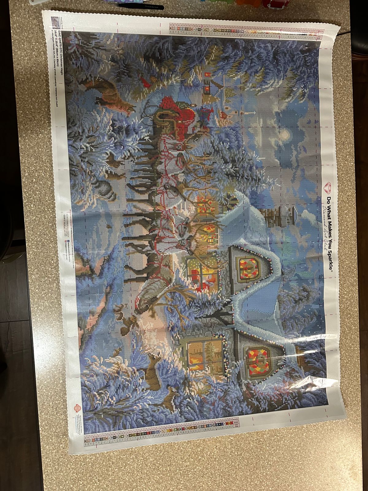 This is just stunning! There is so much detail - footprints in the snow on the roof, Santa in the window, the church in the background, the small animals in the foreground…. I could keep going on and on. It came to life with each section I did. I gave it to my carer who spent Christmas in Canada in the snow. We don’t get white Christmas’ in Australia so I didn’t mind gifting it to her. My joy was in doing it. Thanks DAC.