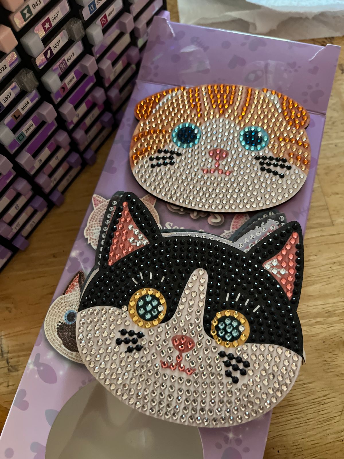 These diamond art cat coasters are absolutely adorable! 🐱✨