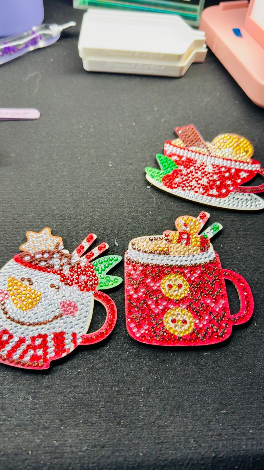 These Christmas mug coasters are so cute! I seem to collect mugs & placing them on these Diamond Art Club coasters will be fun during the holiday ; )