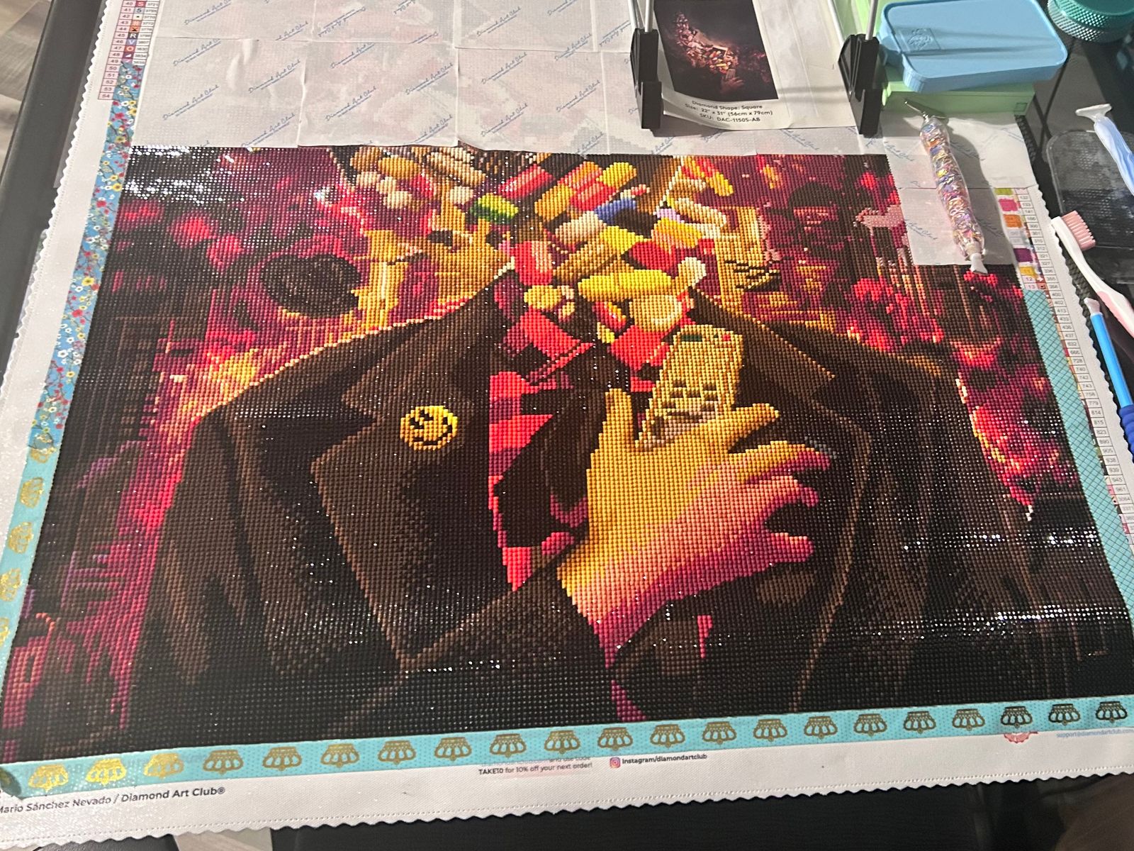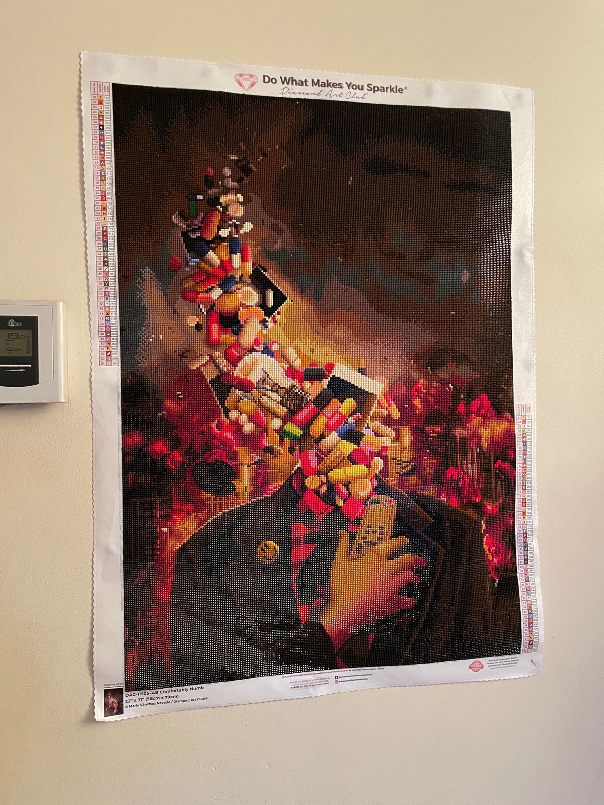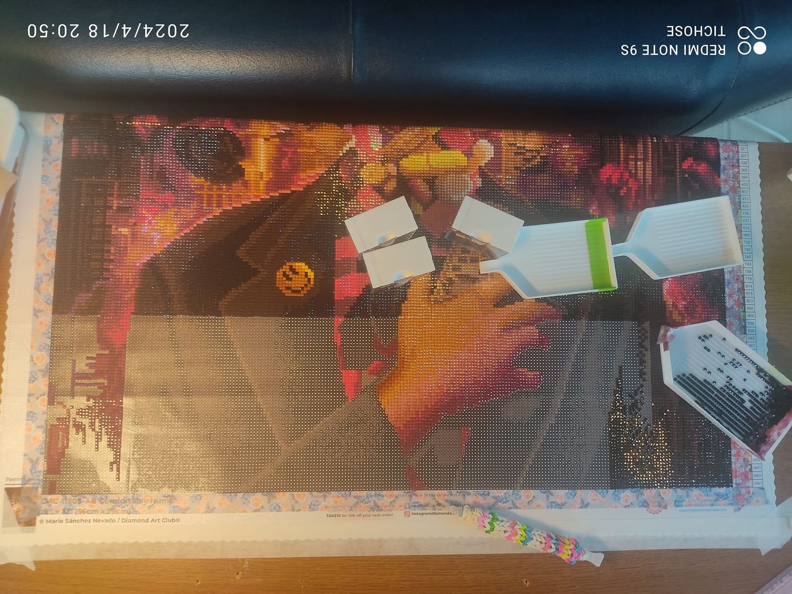 An amazing artwork, takes a lot of time to do but it's beautiful with its many colors and ABs. I would recommend this to someone who's been doing Diamond Paintings for longer, this is not easy for beginners:).