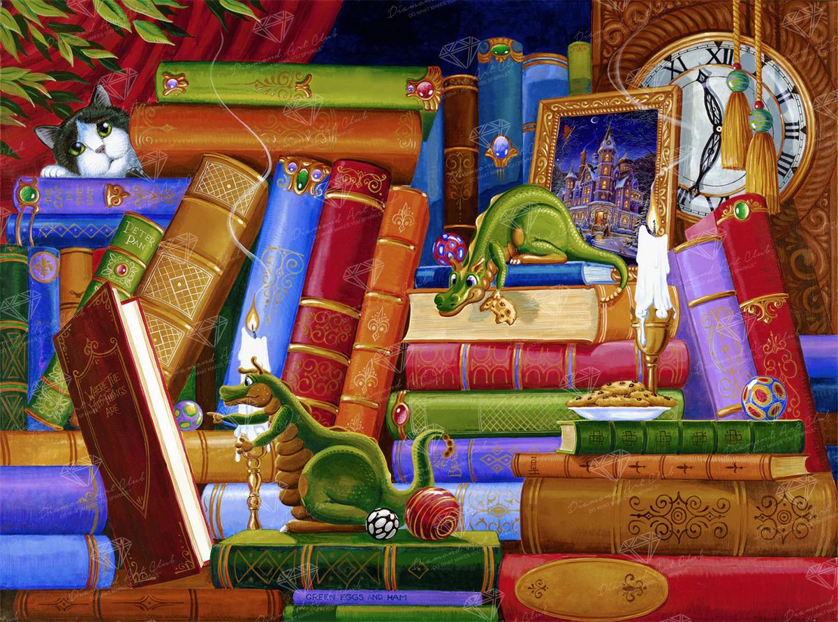 Indulge in a cookie (or two) and dive into the midnight antics of these curious young dragonlings. Amid a jumble of jewel-encrusted tomes, a candlelit adventure awaits. Relish in the mischief and marvel at the original artwork, vibrant in color and rich in detail, crafted to capture the artist’s vision perfectly.