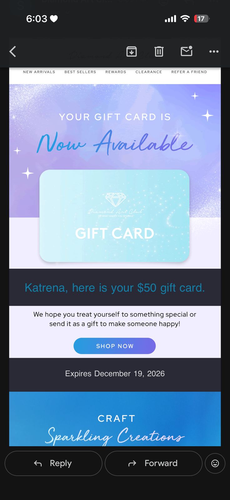 “This gift card is such a great idea! It’s fast, convenient, and perfect for anyone who loves diamond painting. Diamond Art Club always delivers top-tier quality, and a gift card lets you pick the canvas you’ve been dreaming of. Highly recommend for birthdays, holidays, or just because!”