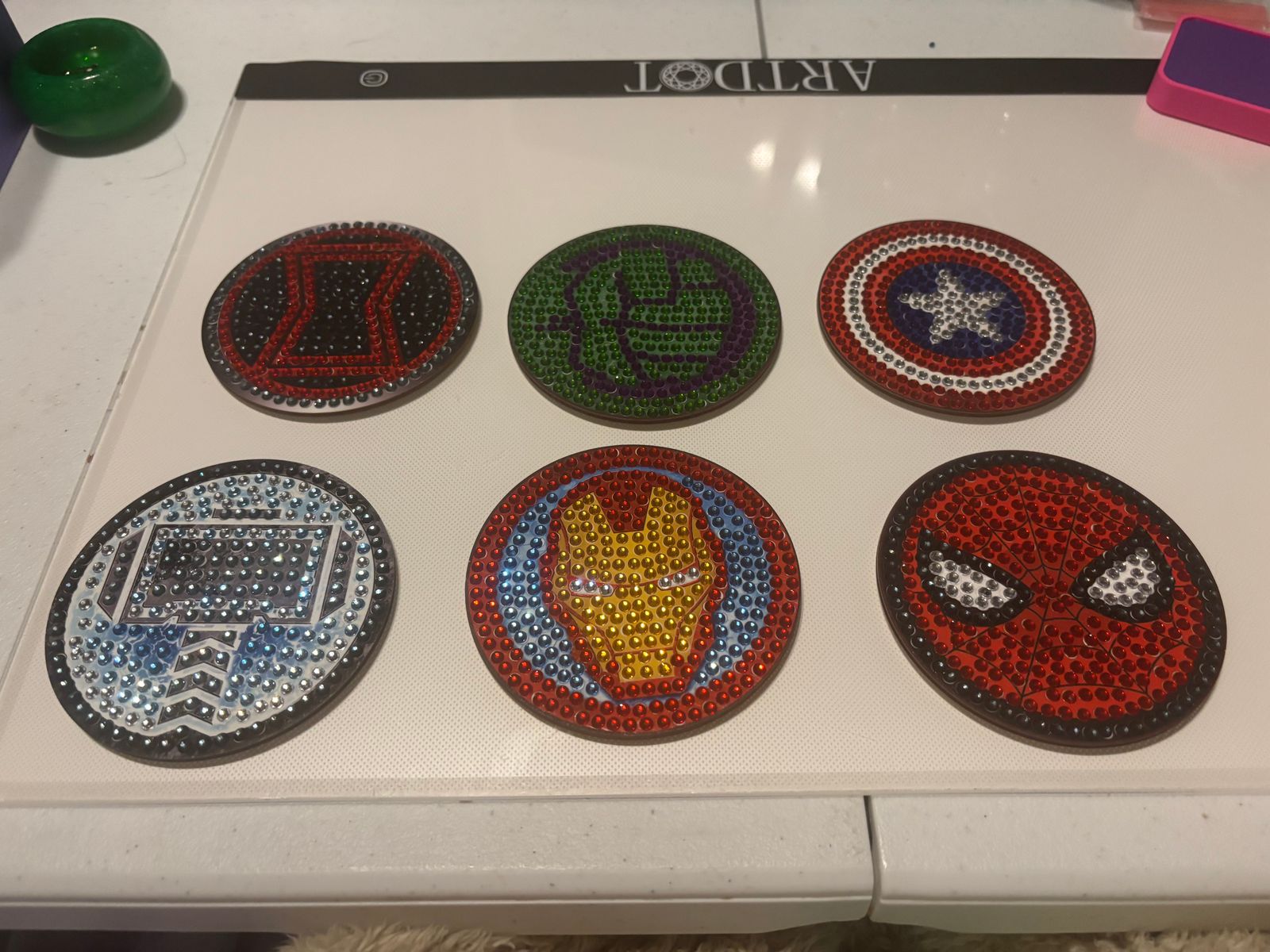 I love marble, so when I see these coasters, I had to get them to put them on my display of my collection that I am starting for Marvel and I literally did all of them in less than like five hours. I thought the drills were gonna be smaller, but they were bigger and they made it much easier for me. I love them very much..