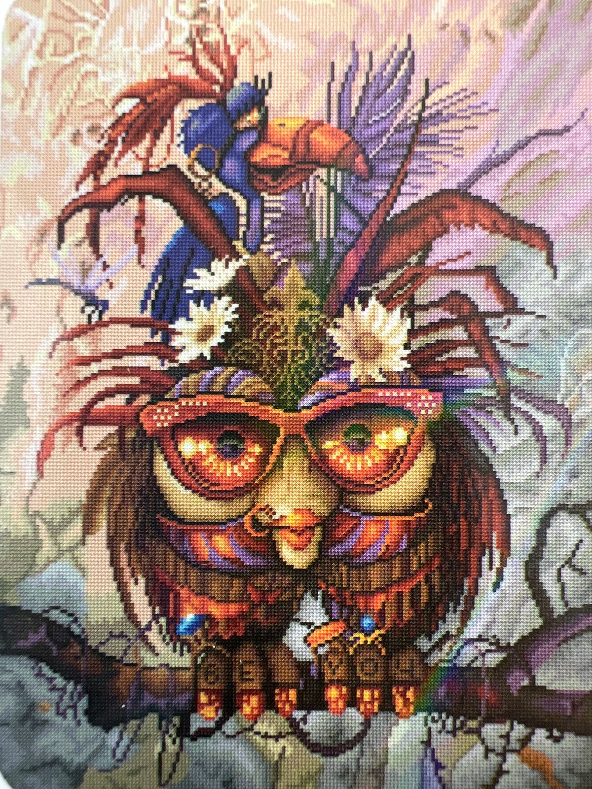 She is one of my favorites of Richard Lorenz's birds. Colorful from top to bottom. A sheer joy to complete.