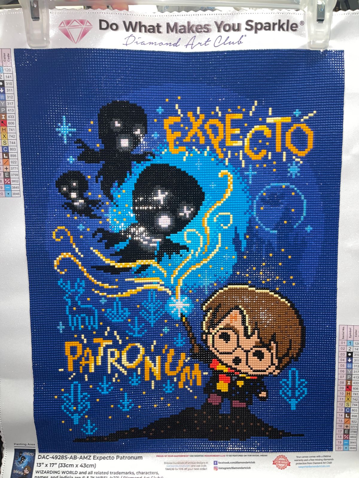 I received this as a mystery gift, and I loved doing it! I have a friend who is a huge HP fan, so I gave it to her as a gift when I completed it. She was thrilled! It's not huge, so it's easy to frame. It is also a lot more sparkly than the stock images look (you have to see it IRL). It only took me a few days to complete, and it came out beautifully. There is a LOT of dark colors, so you definitely want a light board when working on this one.
