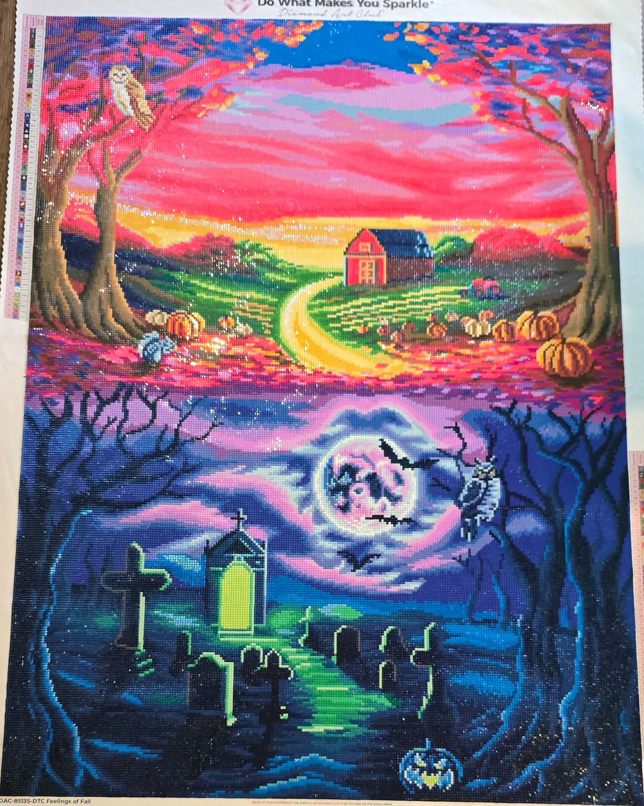 My first kit and it turned out so beautiful and sparkly! The quality of the kit is exceptional and the drills fit perfectly together. Great mix of confetti and color blocking. It's a huge canvas, with the perforated cover it was easy to focus on one section at a time and see this stunning scenery come to life!
