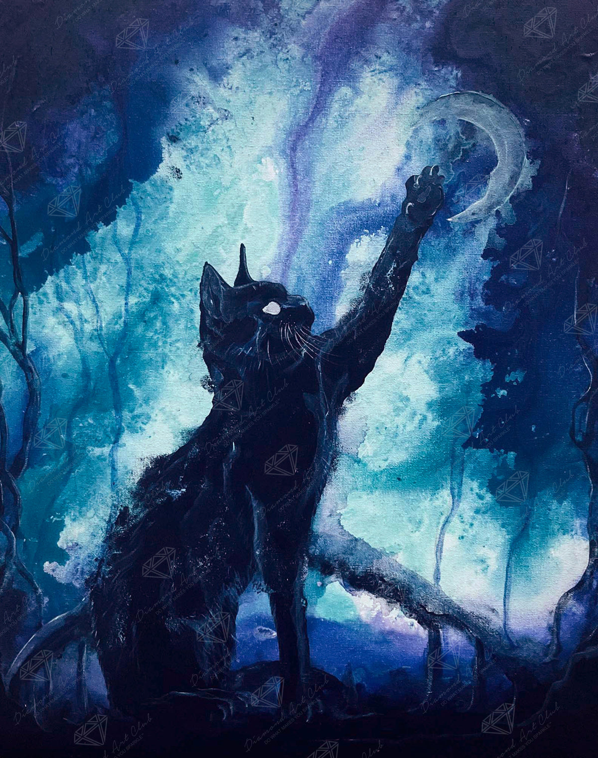 This took mme a little longer to complete than I expected. But it was the first time I used square diamonds. Ithe square diamonds weee a little harder at first for me but the end result I beautiful. I’m so happy with this one! Love all the blues with the black cat!