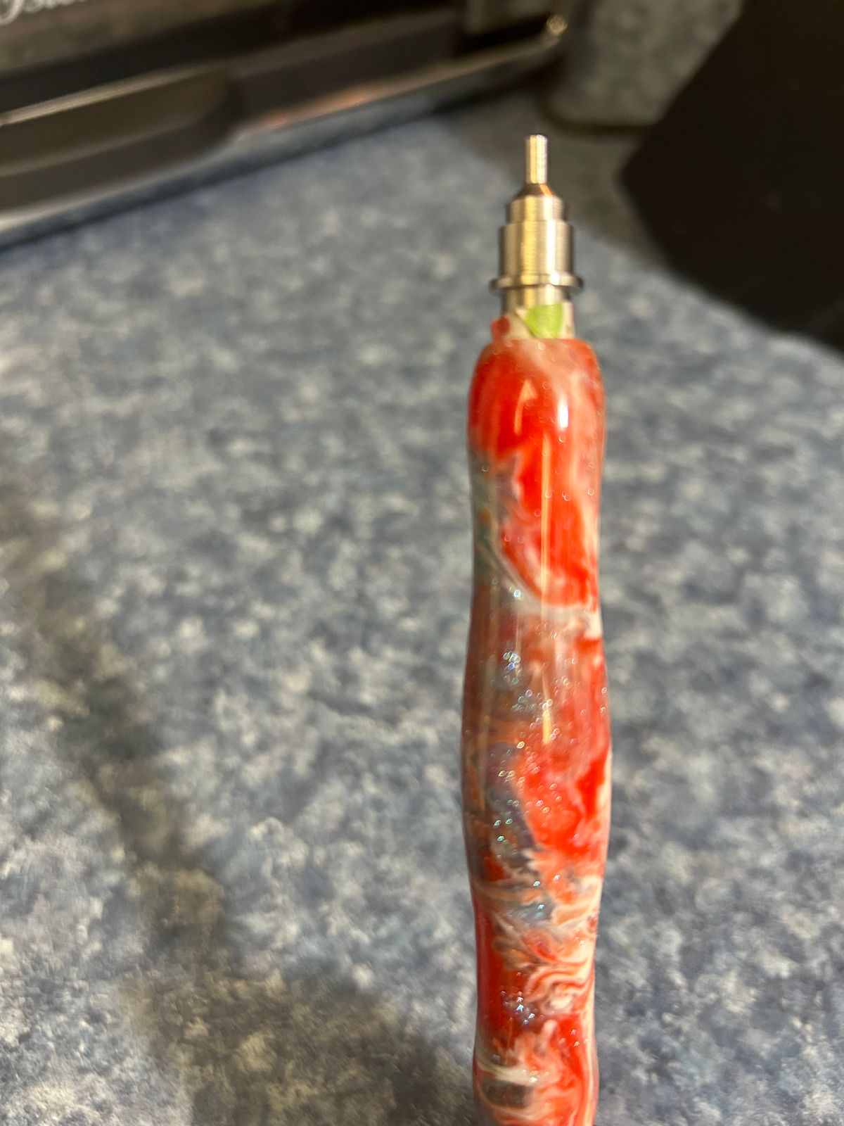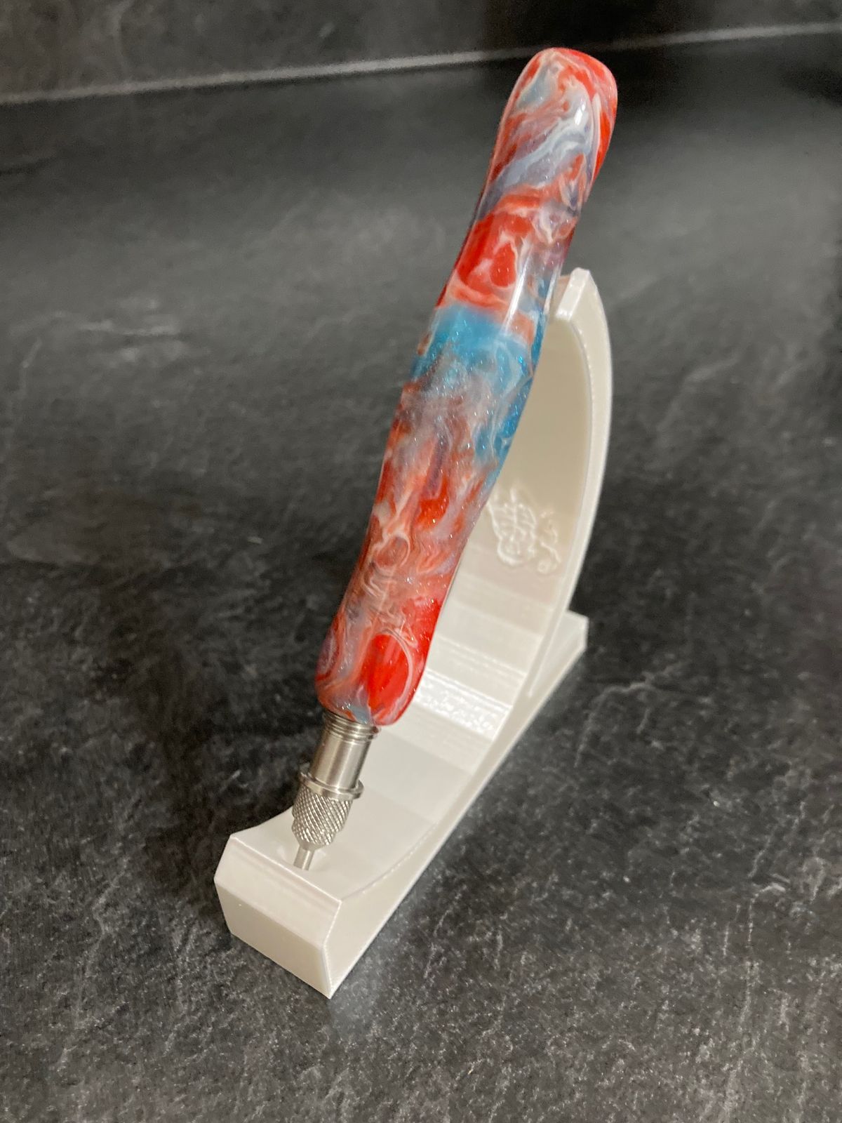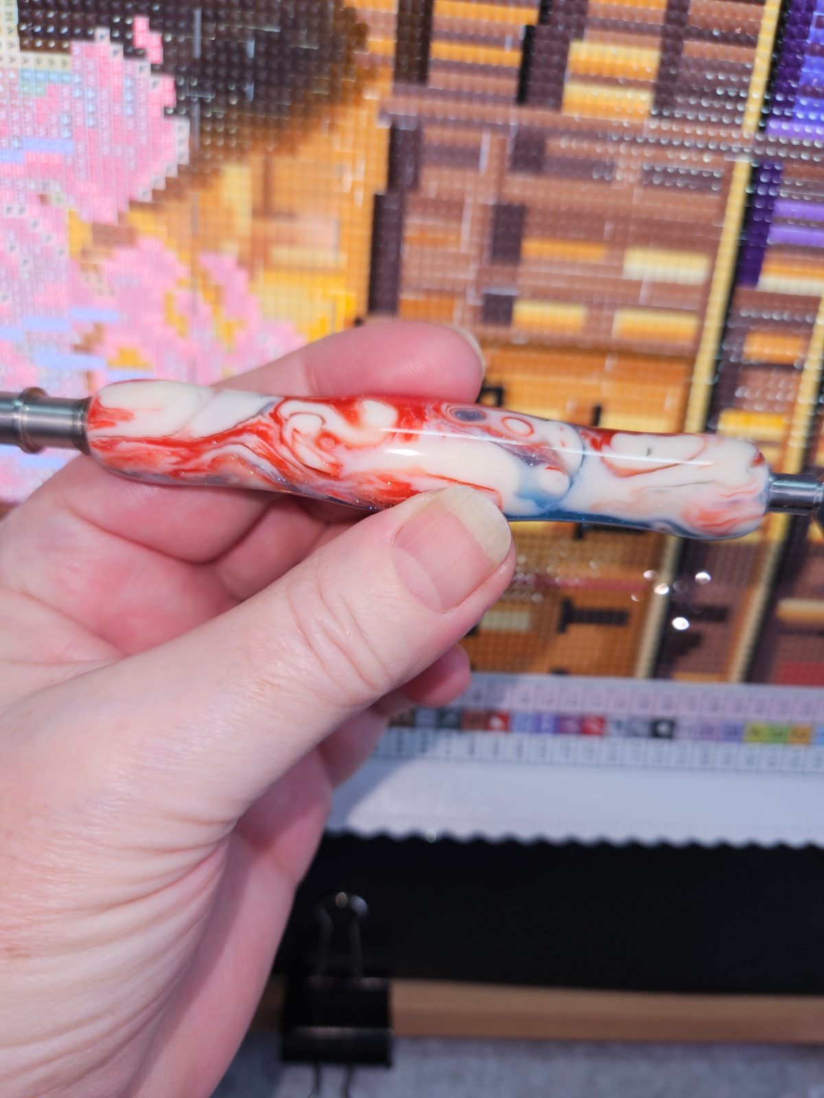 I love the concept of the twist and pick pen, but the ones that come in the kits are a little thin for the comfort of my hand. This pen is very comfortable to hold while also being twist and pick. It's not as chunky as some pens that I have, but is a really good medium width. I also love how colorful and sparkly it is.