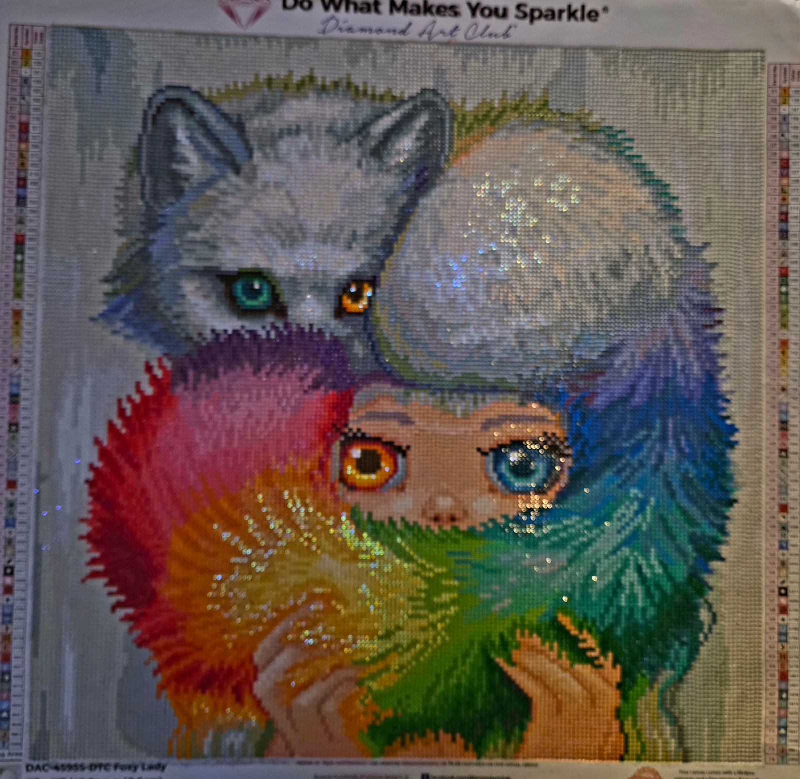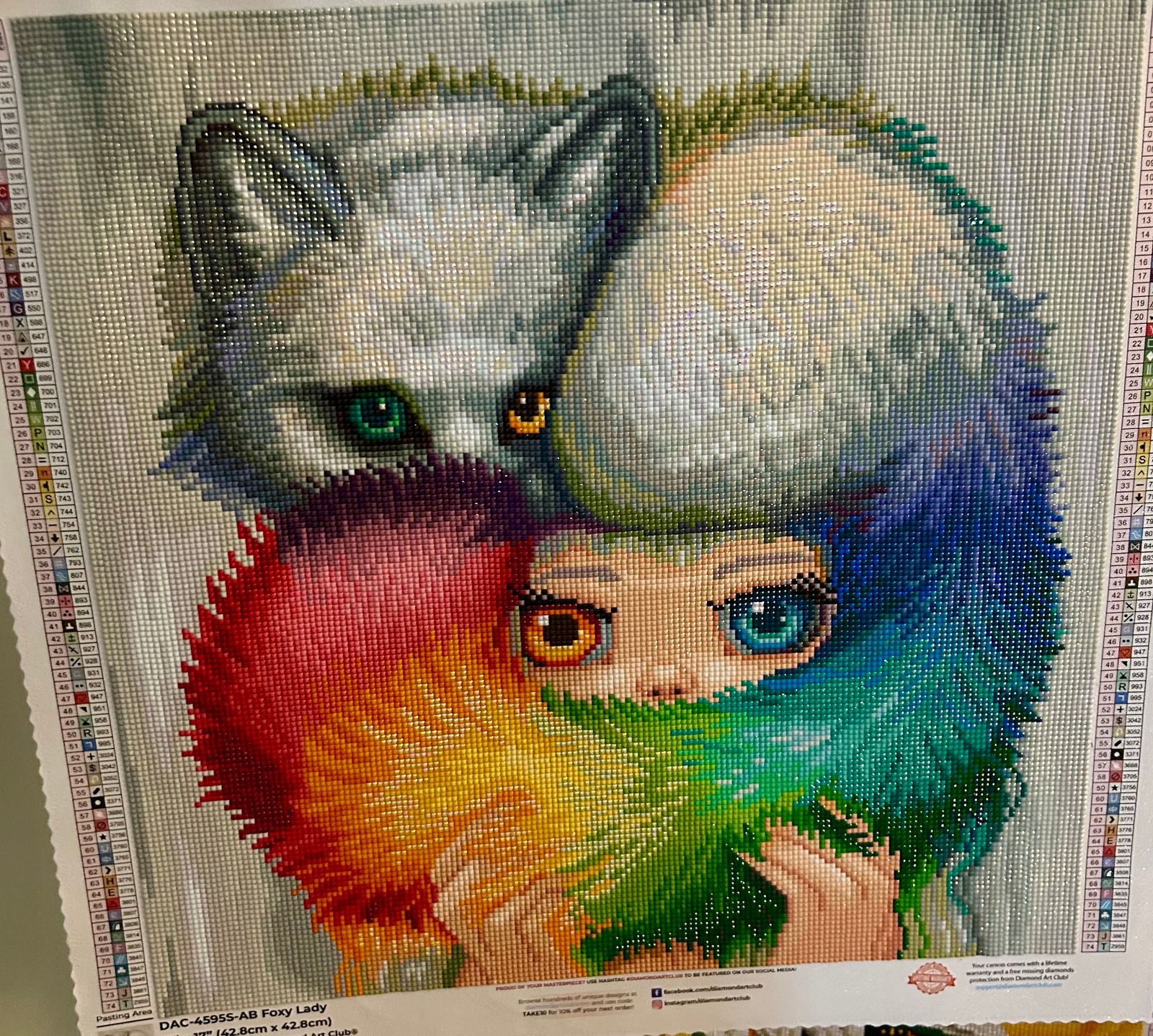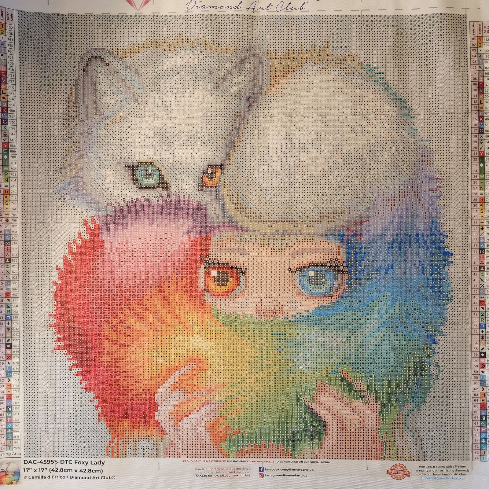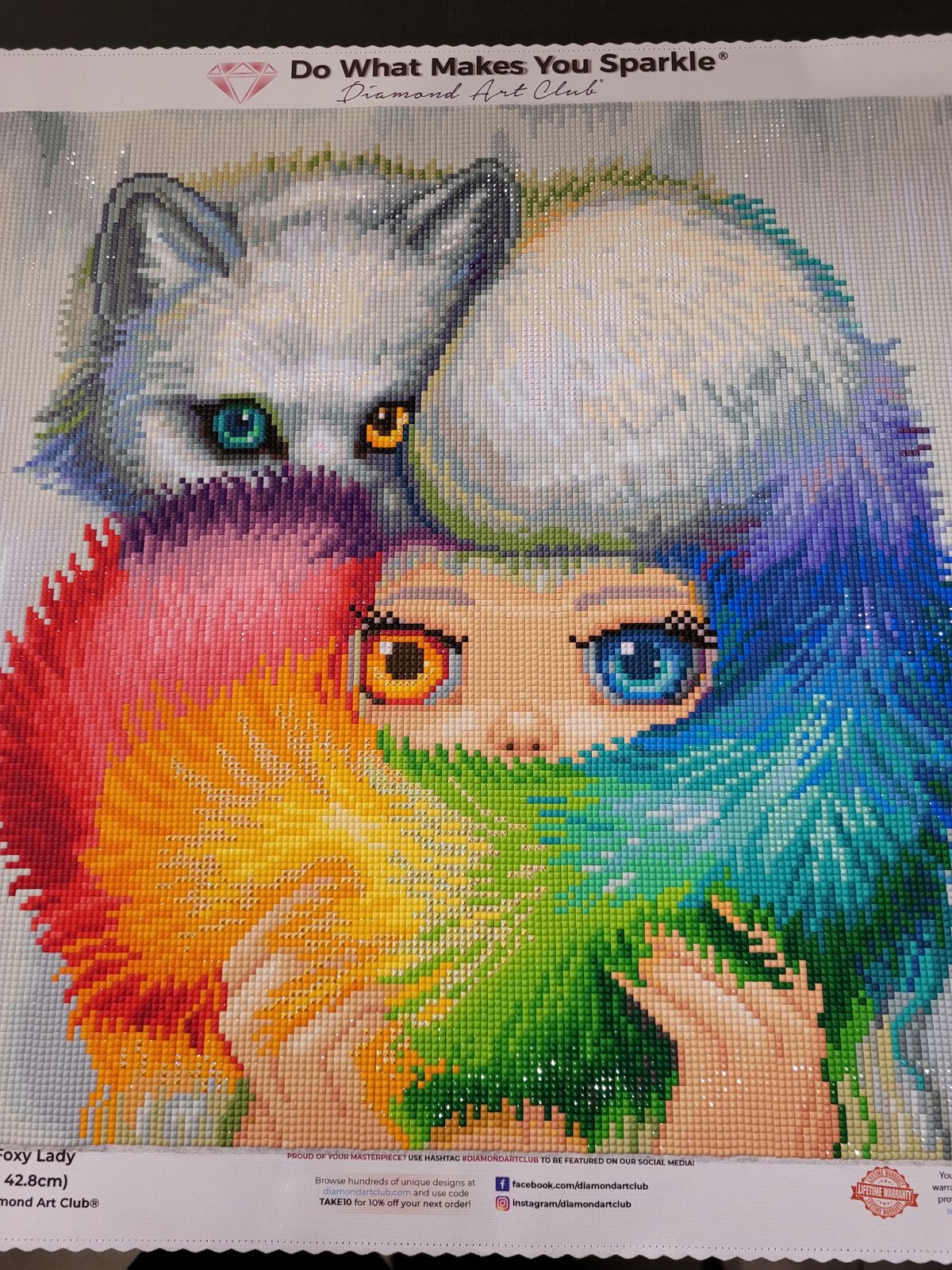 I love this canvas. It is so stunning with all the colors & the eyes are such a great addition. I am still learning to do squares but once I get the hang of it this is definitely going to be the first one I do. I can't wait! So many colors!!!