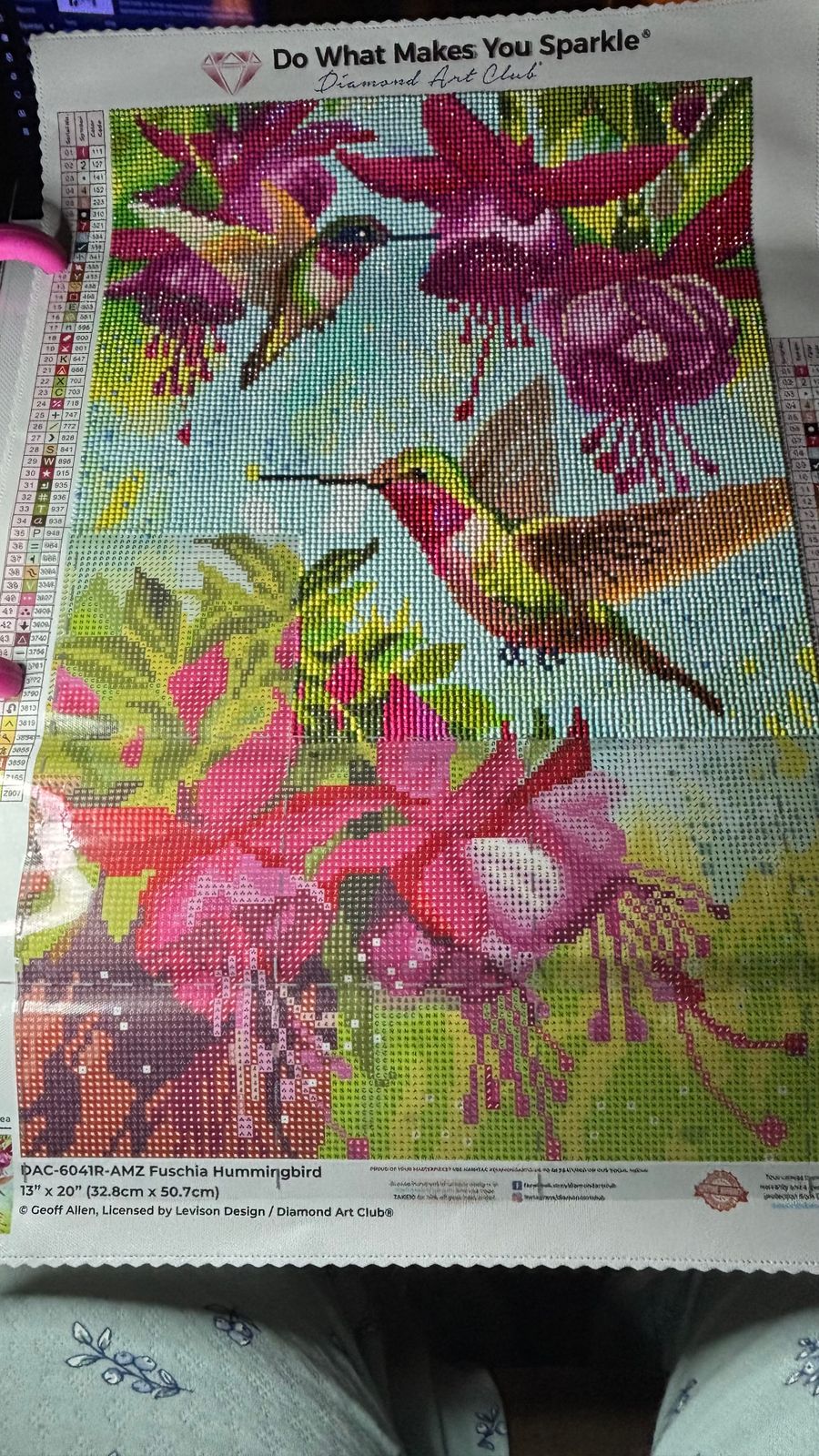 A smaller kit to work on between larger kits. Beautiful colors in the flowers and hummingbird.