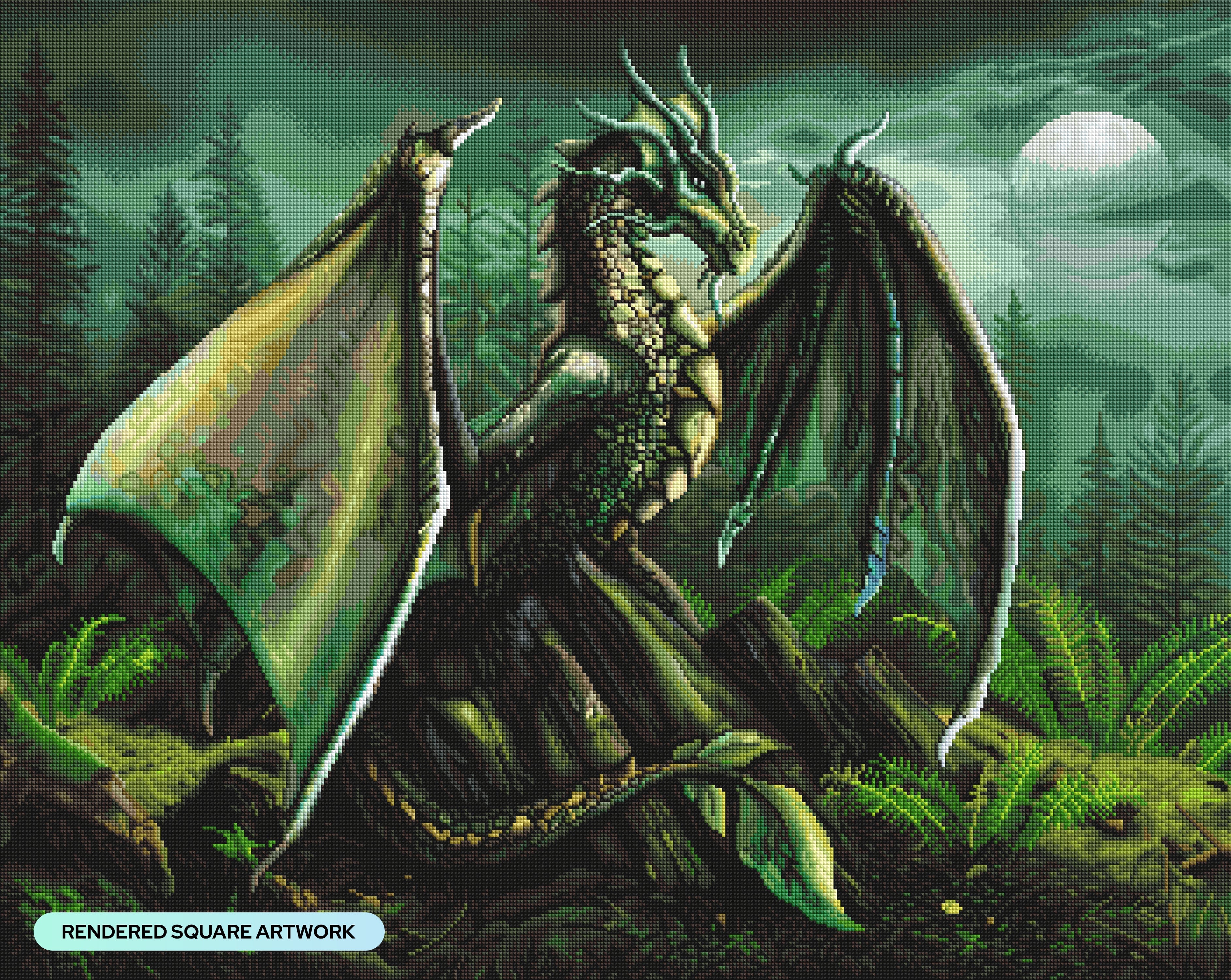 Reveal your mighty presence, standing tall as the emerald forest’s majestic protector. Shimmering scales and moonlit spikes ignite awe in those who dare approach.