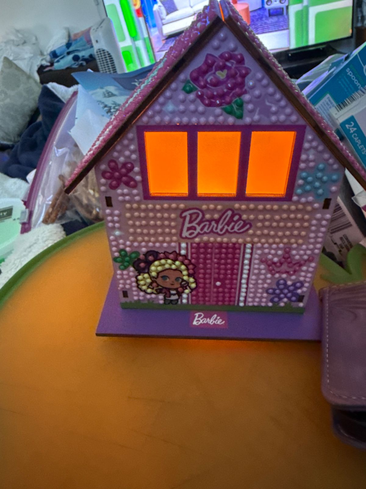 Watch the light dance on your walls with diamond art shimmer and Barbie® charm! Create your own mini-dreamhouse that lights up, bursting with pink and ready to add drama and delight.