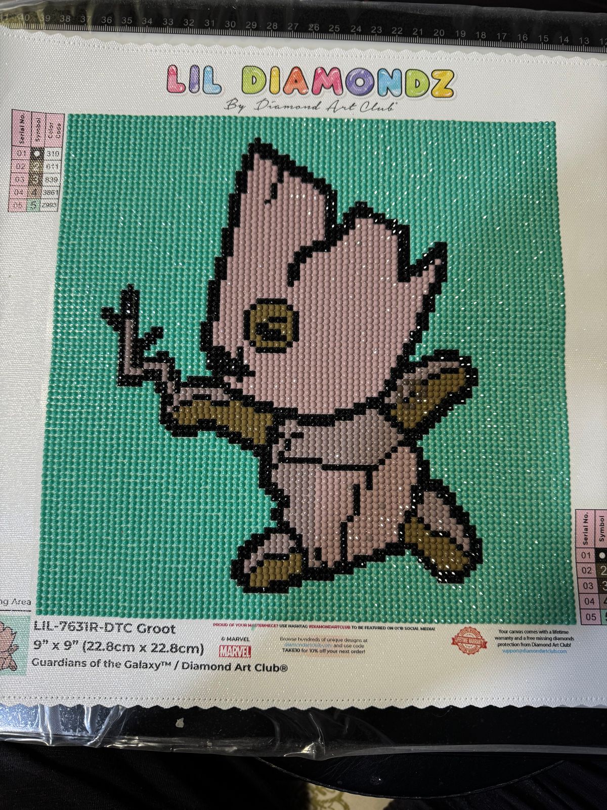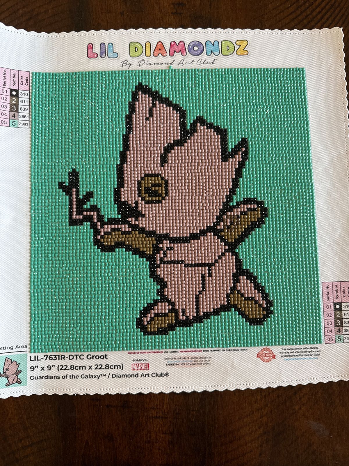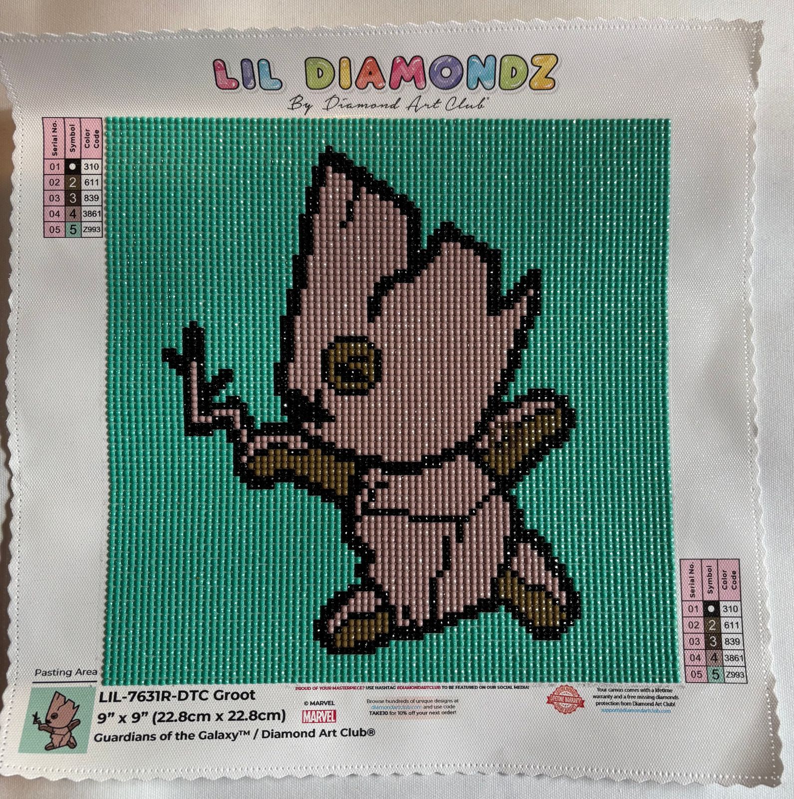 Diamond Painting Groot 9" x 9" (22.8cm x 22.8cm) / Round with 5 Colors including 1 Fairy Dust Diamond / 6,889