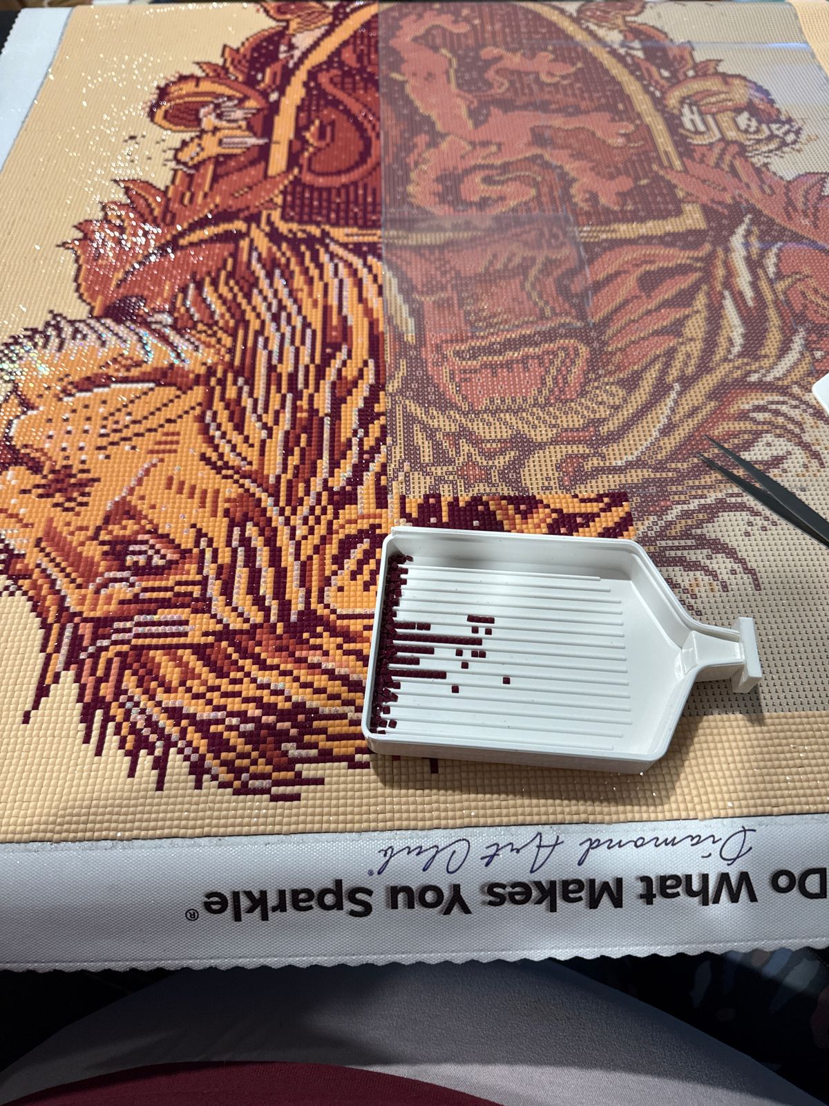 My first purchase from DAC. It’s such better quality than the previous diamond paintings I’ve done from the craft store. It’s huge and the drills are so pretty. I love that they are square instead of circles.