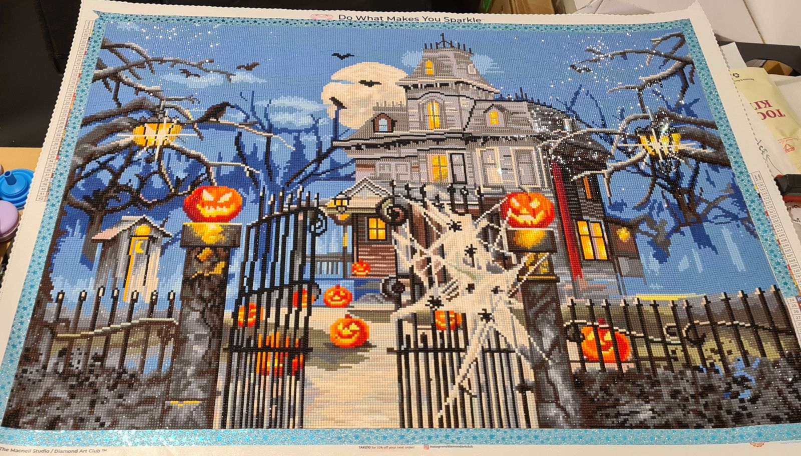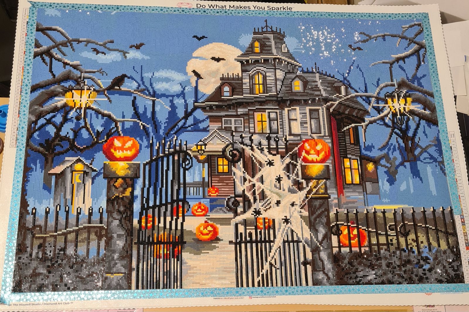 I love Halloween and as soon as they released this kit, I had to get it! The black drills were a bit trashy, but I still had plenty leftover and didn’t have any real problems with the kit. It was so fun to work on! The rendering is amazing!