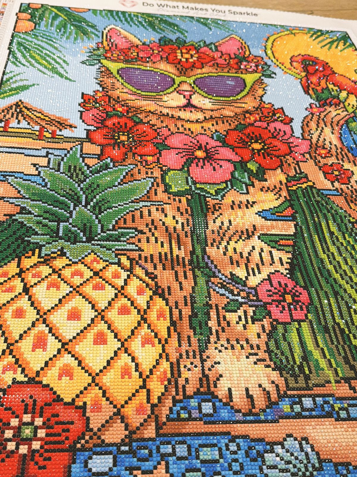 Celebrate the summer sun all year round with this Meow-loha painting of island fun. Just grab your shades and wear your leis because this kitty is ready to bask his days away.