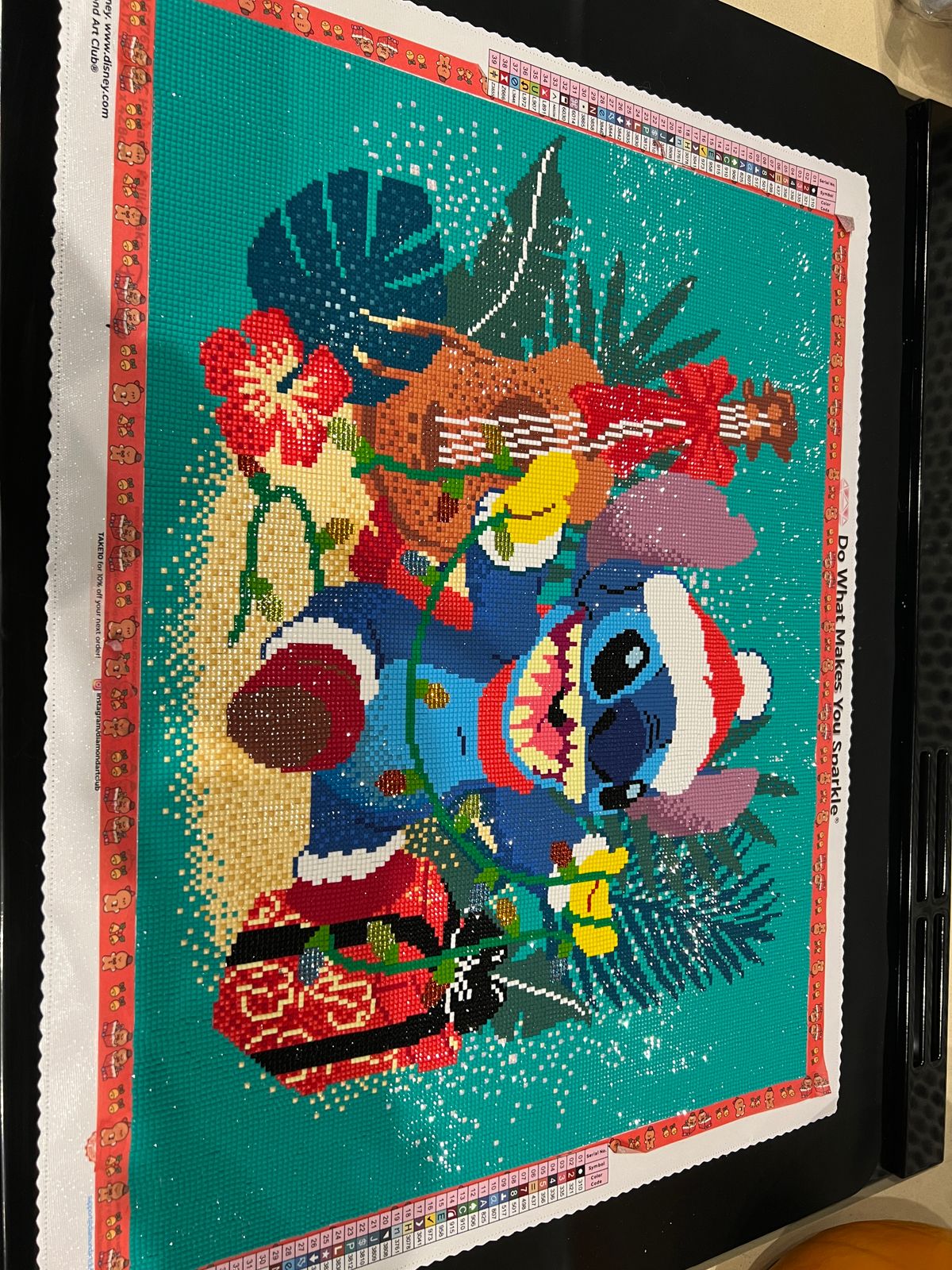 This is such a cute image with Stitch playing with Christmas lights. My only complaint is for the size of the kit I ended with quite a lot of drills that were concave/convex that wouldn’t properly stick to the glue, mainly in the background colour.
