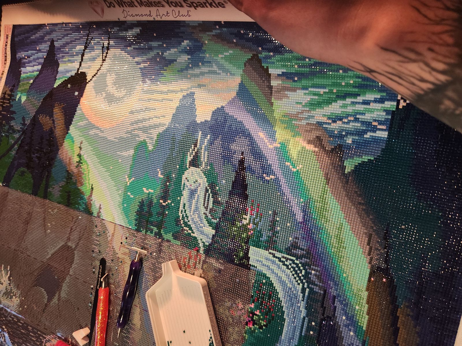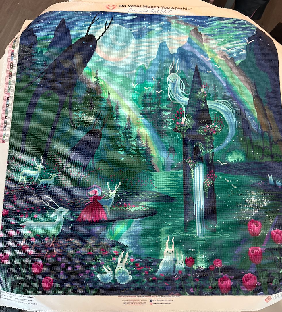 I’m not sure if because this painting is mainly darker colors - but there was quite a few trash drills & just wonky slanted drills. I ended up using some of them anyways because I didn’t want to bother DAC for more drills. In the end, you can’t notice and the painting turned out beautiful. Moonbound is my favorite artist and this is rendered beautifully!